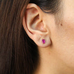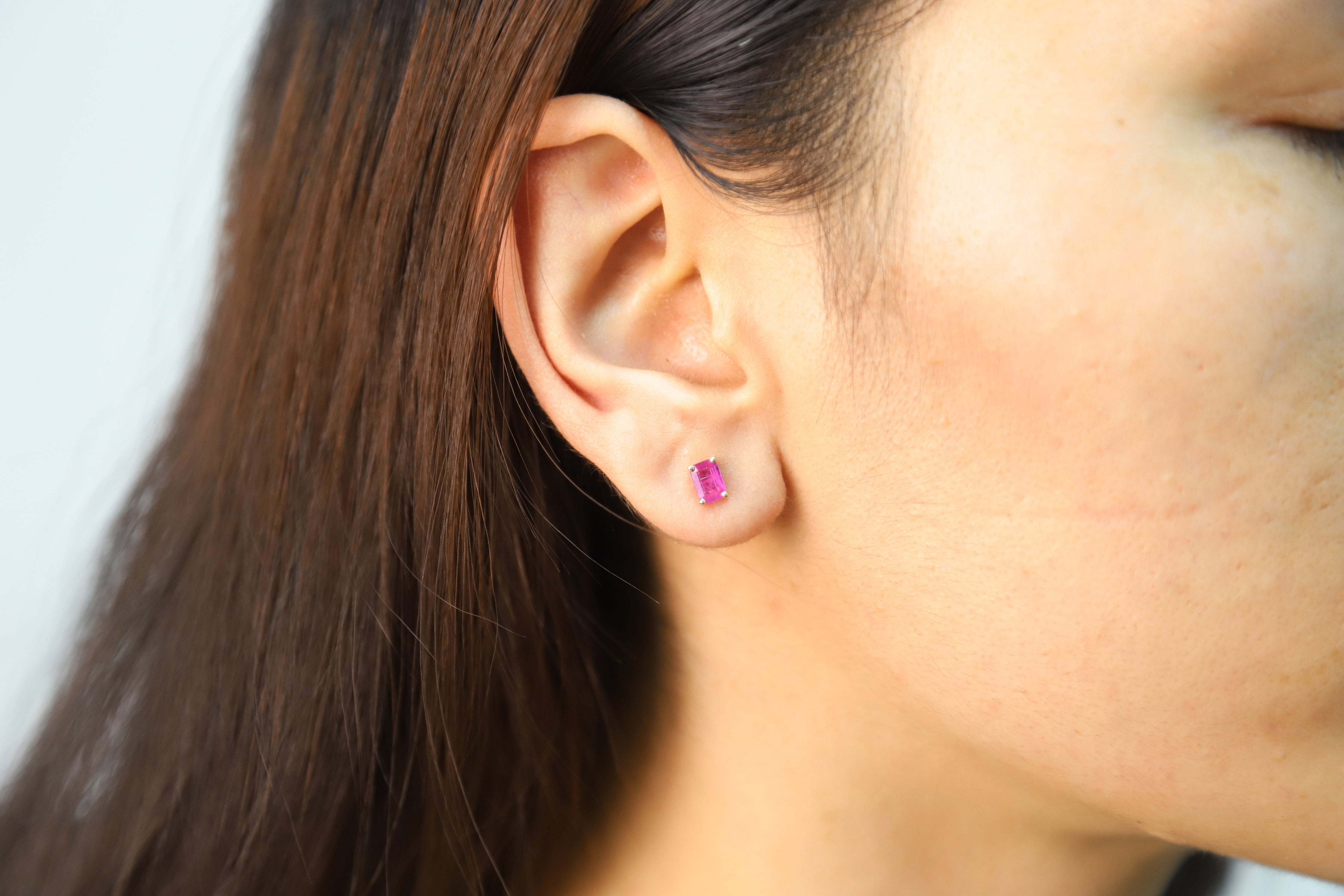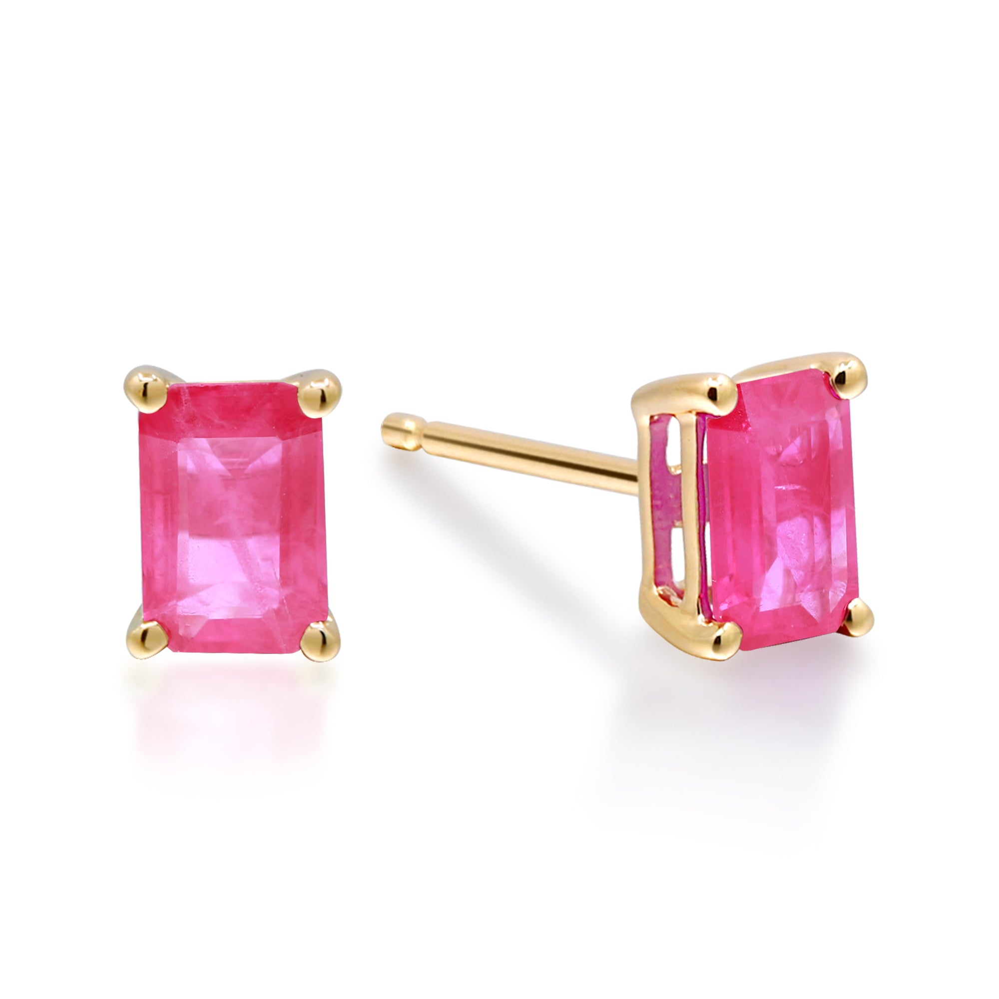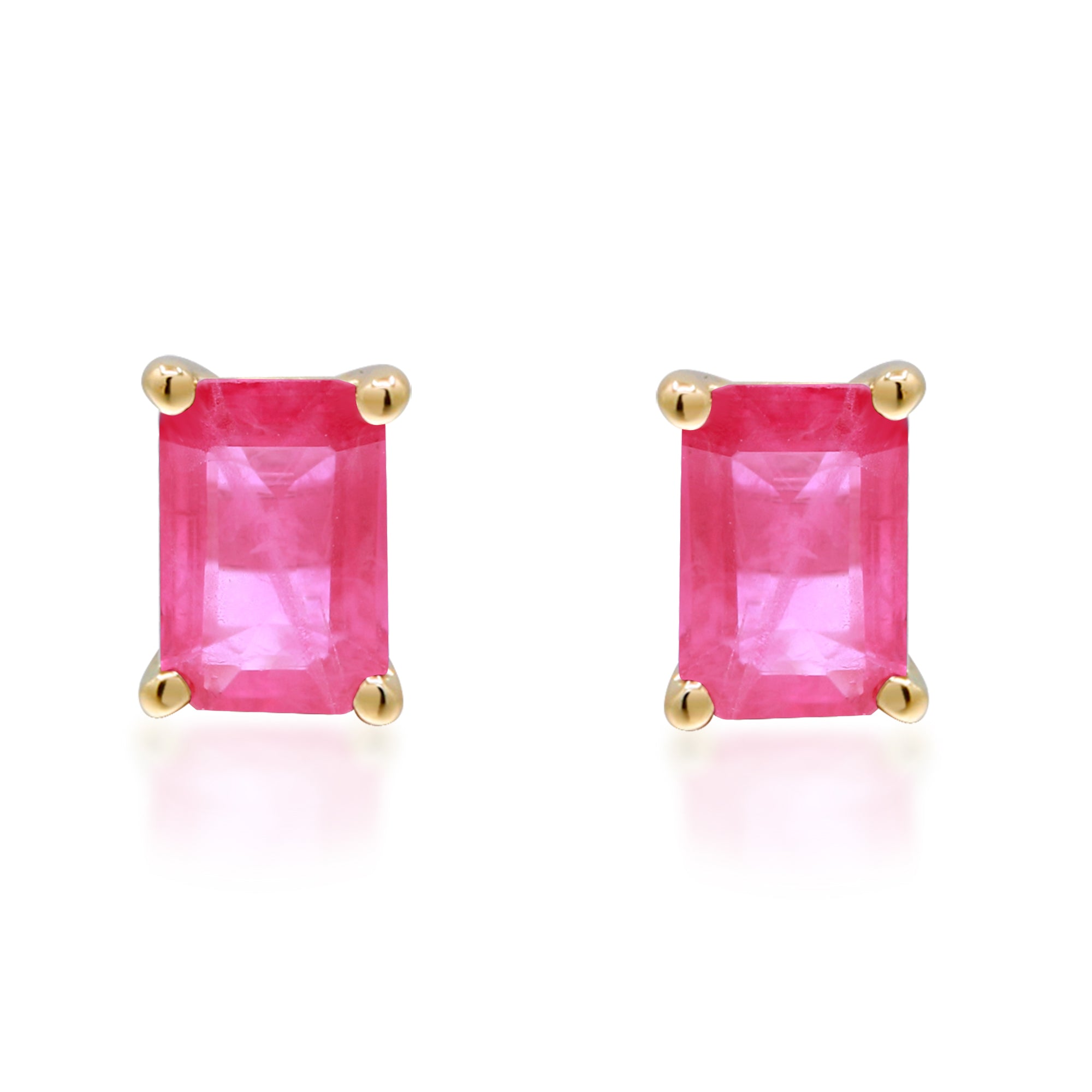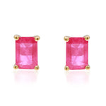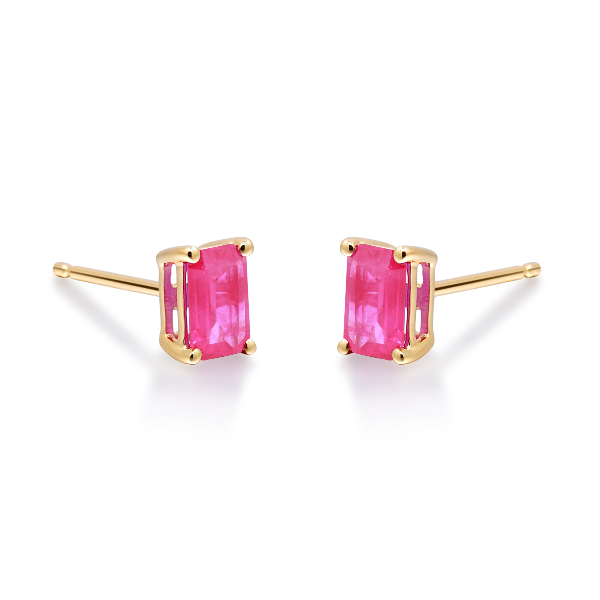 Decorate yourself in elegance with this Earring is crafted from 14-karat Yellow Gold by Gin & Grace Earring. The jewelry boasts 4X6 mm Emerald-Cut prong setting Mozambique Ruby (2pcs) 1.04 Carat. This Earring is weight 0.88 grams. This delicate Earring is polished to a high finish shine. Simple Stud clasps keep these earrings securely fastened.