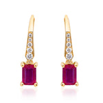 Decorate yourself in elegance with this Earring is crafted from 14K Yellow Gold by Gin & Grace Earring. The jewelry boasts Emerald-Cut prong setting Mozambique Ruby (2 pcs) 1.14 Carat and Round-Cut prong setting Diamond (10 pcs) 0.13 Carat. This Earring is weight 1.63 grams. This delicate Earring is polished to a high finish shine. Simple Stud clasps keep these earrings securely fastened.
