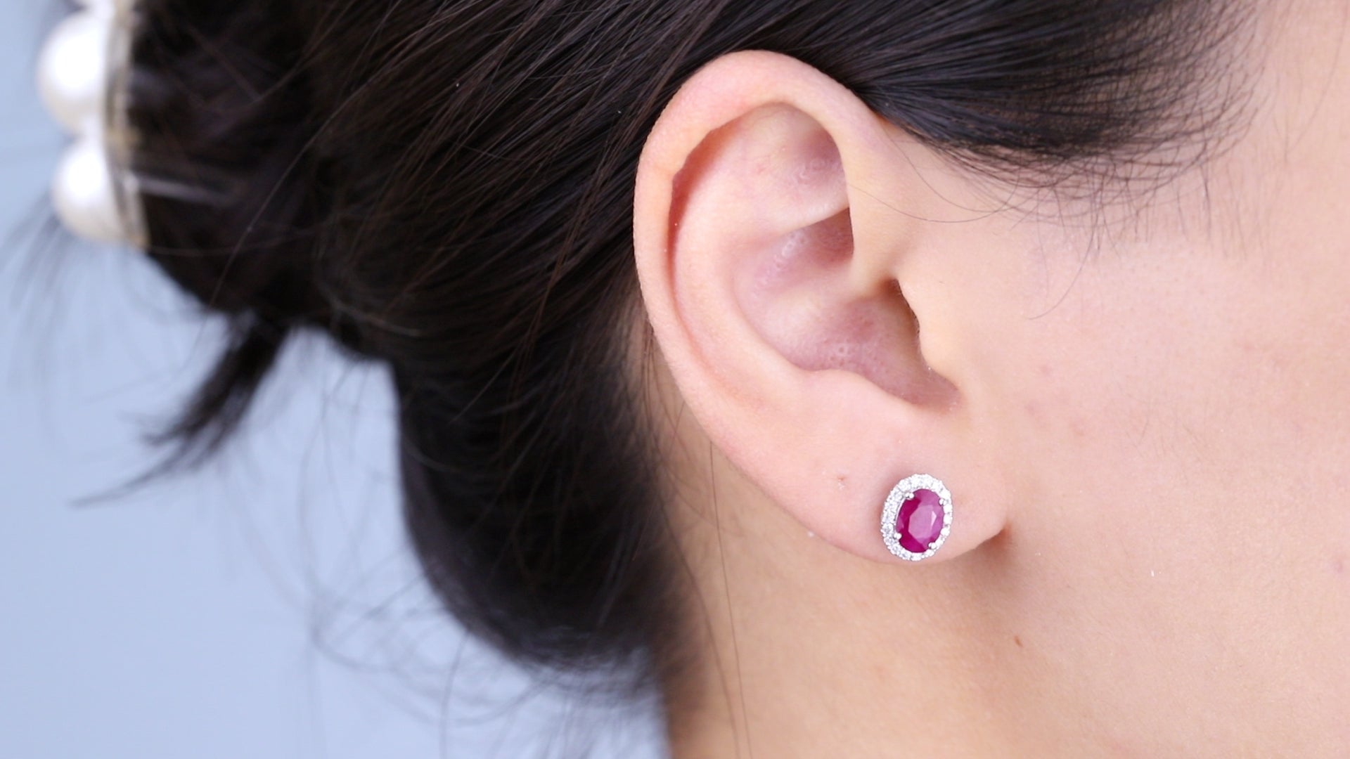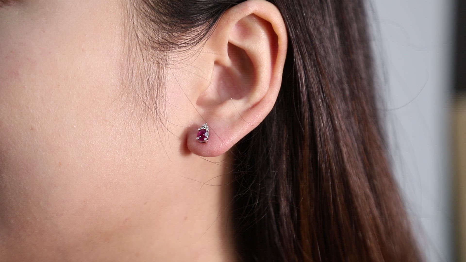Sara 10K White Gold Oval-Cut Mozambique Ruby Earring
