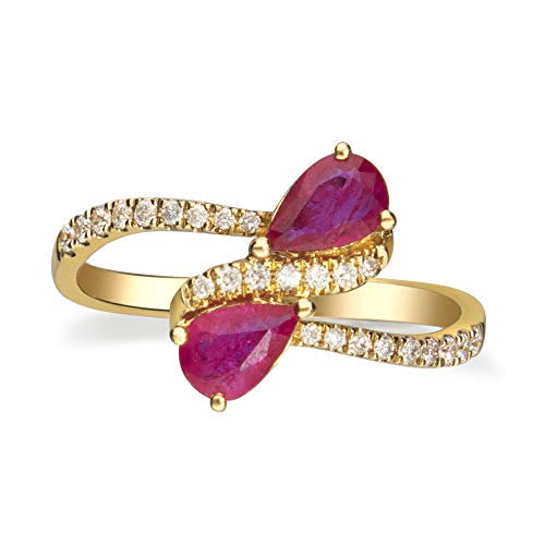Stunning, timeless and classy eternity Unique ring. Decorate yourself in luxury with this Gin & Grace ring. This ring is made up of Pear-Cut Prong Setting Mozambique Ruby (2pcs) 0.88 Carat and Round-Cut Prong Setting Diamond (25pcs) 0.17 Carat accent stones for a lovely design weighing 1.79 grams. Crafted with 10k Yellow Gold, this delicate Ring is polished to a high finish shine