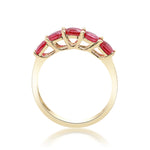 Decorate yourself in elegance with this Ring is crafted from 10-karat Yellow Gold by Gin & Grace. This Ring is made up of Oval-Cut (5 pcs) 1.19 carat Mozambique Ruby. This Ring is weight 1.89 grams. This delicate Ring is polished to a high finish shine.