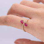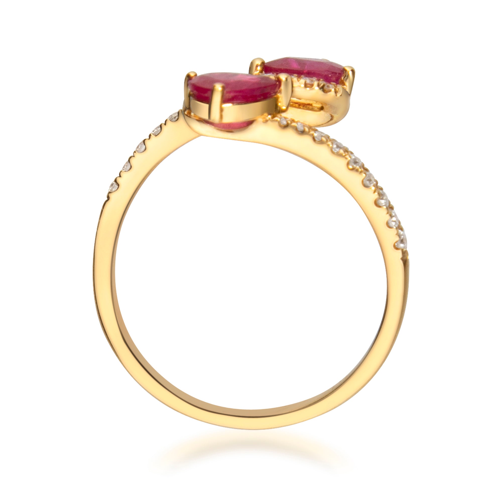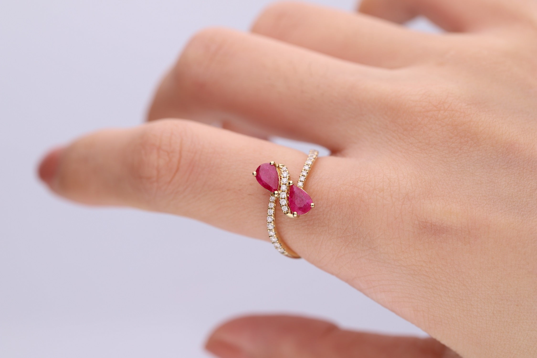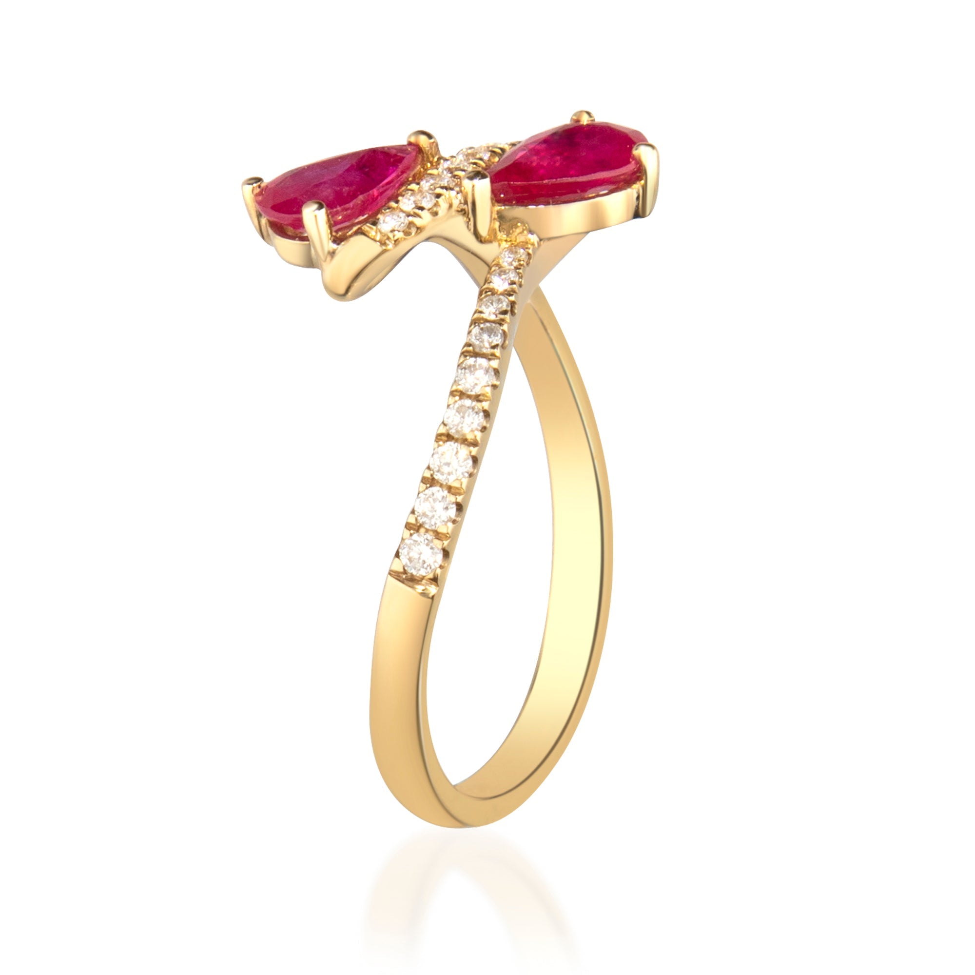 Stunning, timeless and classy eternity Unique ring. Decorate yourself in luxury with this Gin & Grace ring. This ring is made up of Pear-Cut Prong Setting Mozambique Ruby (2pcs) 0.88 Carat and Round-Cut Prong Setting Diamond (25pcs) 0.17 Carat accent stones for a lovely design weighing 1.79 grams. Crafted with 10k Yellow Gold, this delicate Ring is polished to a high finish shine