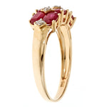 Stunning, timeless and classy eternity Unique ring. Decorate yourself in luxury with this Gin & Grace ring. The 14k Yellow Gold jewelry boasts 3X5 Oval-Cut Prong Setting Mozambique Ruby (6pcs) 2.09 Carat and Round-Cut Prong Setting Diamond (4pcs) 0.04 Carat accent stones for a lovely design. This ring is weight 2.10 grams. Crafted with 10k Yellow Gold, this delicate Ring is polished to a high finish shine. Â
