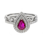 Stunning, timeless and classy eternity Unique ring. Decorate yourself in luxury with this Gin & Grace ring. This ring is made up of Pear-Cut Prong Setting Genuine Mozambique Ruby (1 pcs) 0.64 Carat and Round-Cut Prong Setting Diamond (66 pcs) 0.53 Carat accent stones for a lovely design. This ring is weight 3.92 grams. The ring is crafted of shining 14-karat White Gold and is completed by a highly polished finish.