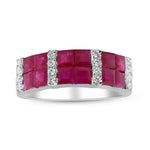 Decorate yourself in elegance with this Ring crafted from 18-karat white Gold by Gin & Grace. This Ring is made up of 3.0 mm Square-Cut Mozambique Ruby (12 pcs) 2.29 carat and Round-cut diamonds (16 pcs) 0.16 Carat. This Ring weighs 3.15 grams. This delicate Ring is polished to a high finish shine.