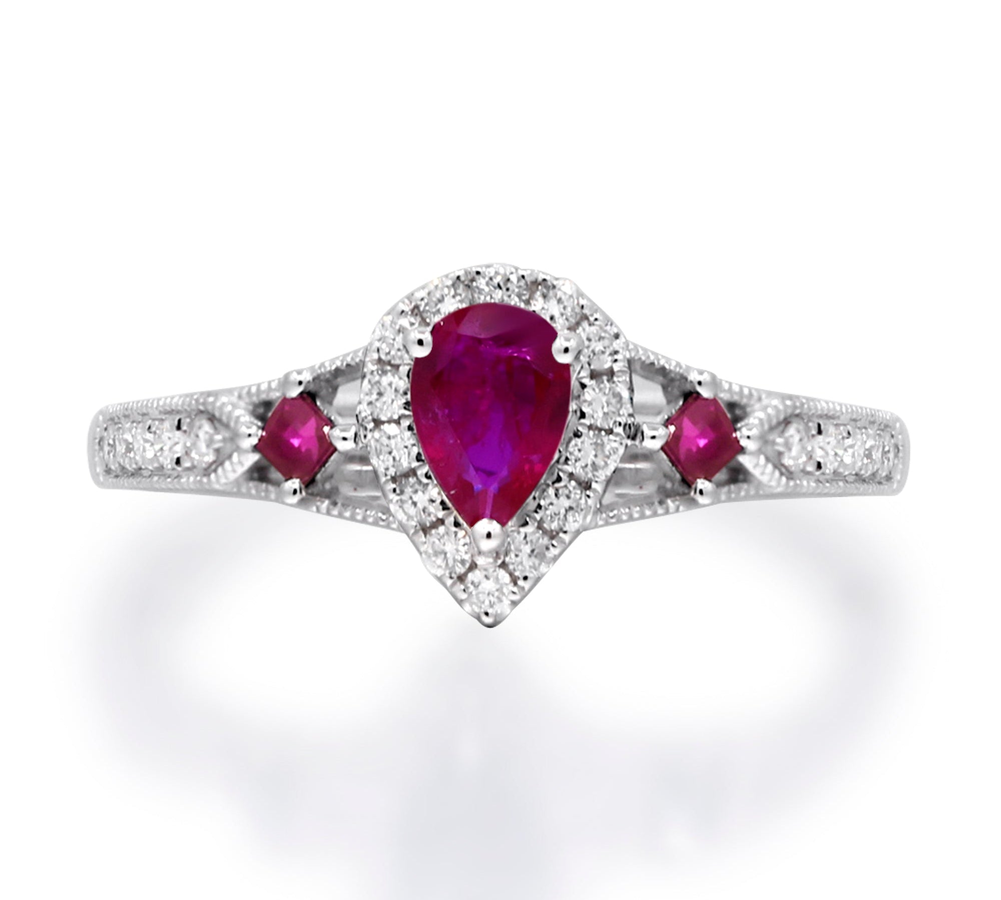 Kaitlyn 14K White Gold Pear-Cut Mozambique Ruby Ring