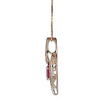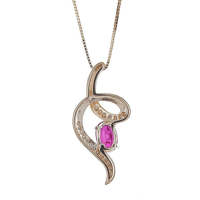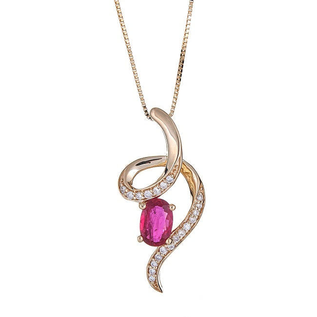 Decorate yourself in elegance with this Pendant is crafted from 10-karat Yellow Gold by Gin & Grace Pendant. This Pendant is made up 4*6 mm of Oval-cut Prong setting Mozambique Ruby (1 Pcs) 0.60 Carat and Round-Cut Prong setting White Diamond (20 Pcs) 0.07 Carat. This Pendant is weight 1.40 grams. The gorgeous Pendant hangs from an 18-inch wheat chain. This delicate Pendant is polished to a high finish shine.