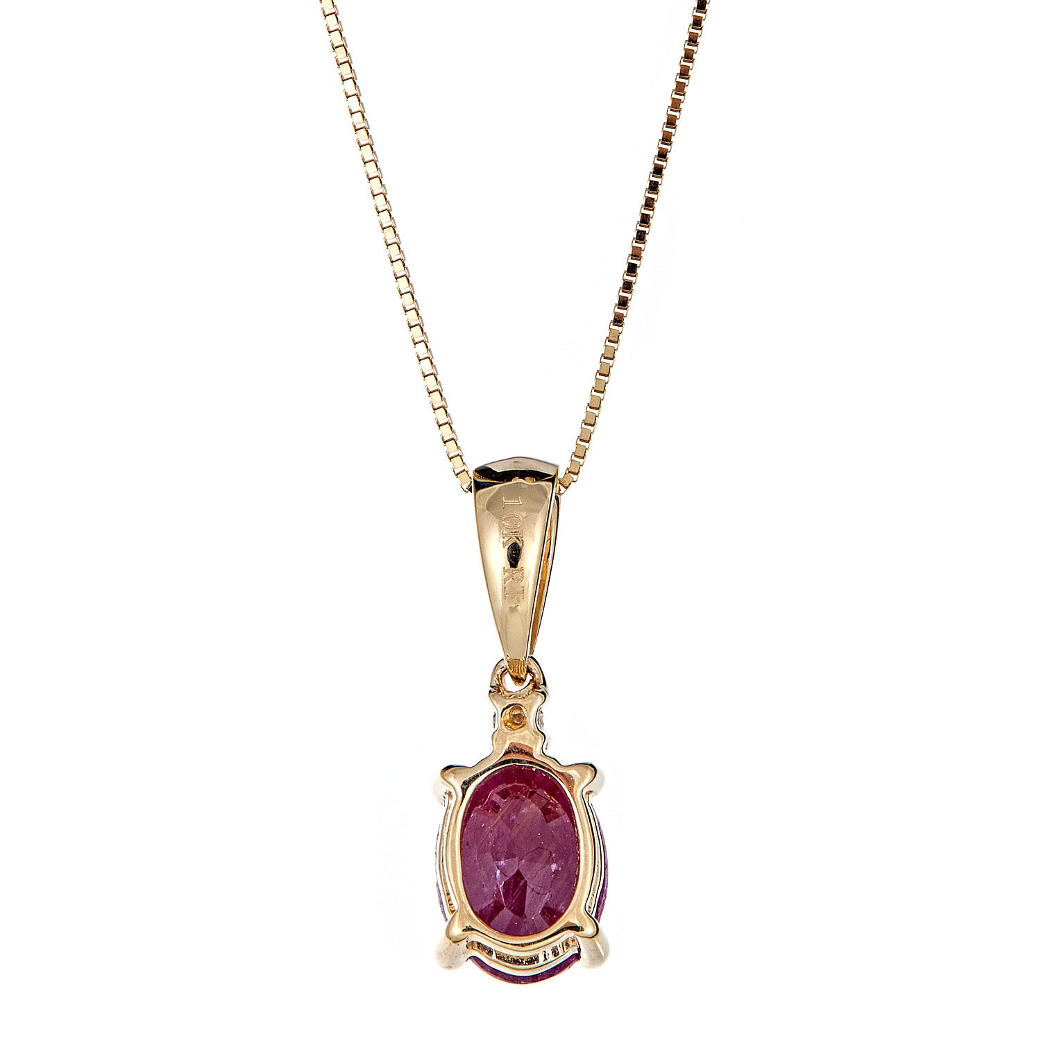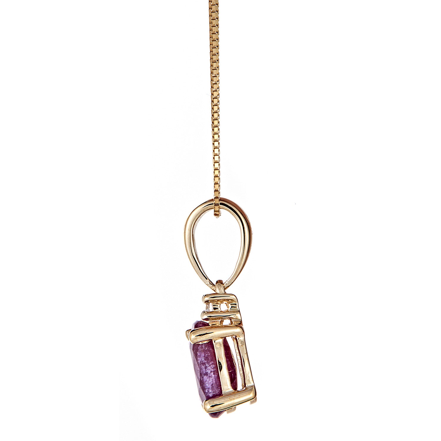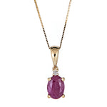 Decorate yourself in elegance with this Pendant crafted from 10-karat Yellow Gold by Gin & Grace Pendant. This Pendant is made up of Oval-Cut Prong setting Genuine Mozambique Ruby (1 Pcs) 1.40 Carat and Round-Cut Prong setting White Diamond (1 Pcs) 0.02 Carat. This Pendant weigh 0.70 grams. The gorgeous Pendant hangs from an 18-inch wheat chain. This delicate Pendant is polished to a high finish shine.