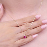 Stunning, timeless and classy eternity Unique Pendant. Decorate yourself in luxury with this Gin & Grace Pendant. This Pendant is made up of Emerald-Cut Prong Setting Genuine Mozambique Ruby (1 pc) 0.57 Carat and Round-Cut Prong Setting Natural Diamond (5 pcs) 0.25 Carat accent stones for a lovely design. This Pendant is weight 1.51 grams. The Pendant is crafted of shining 10K Yellow Gold and is completed by a highly polished finish.