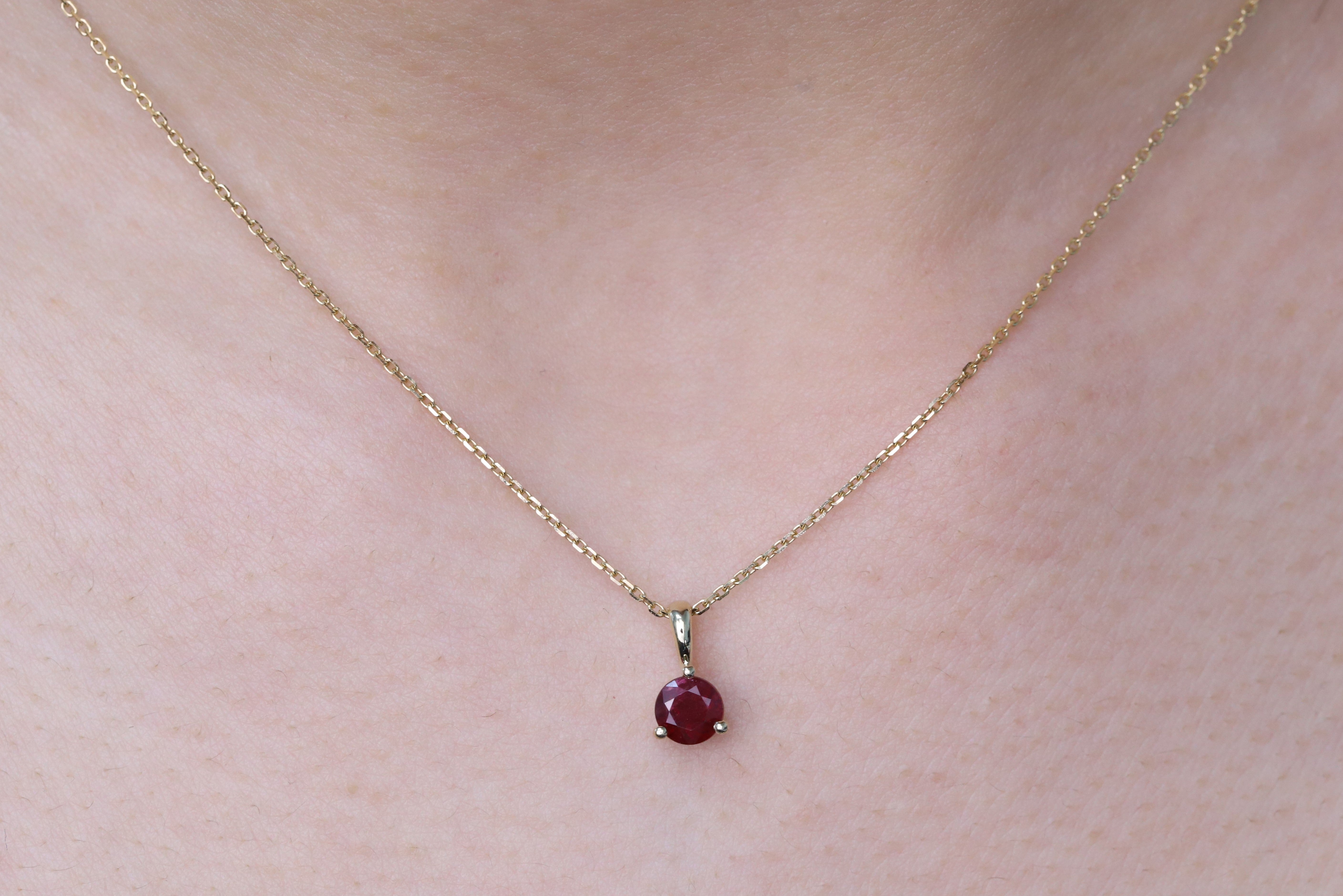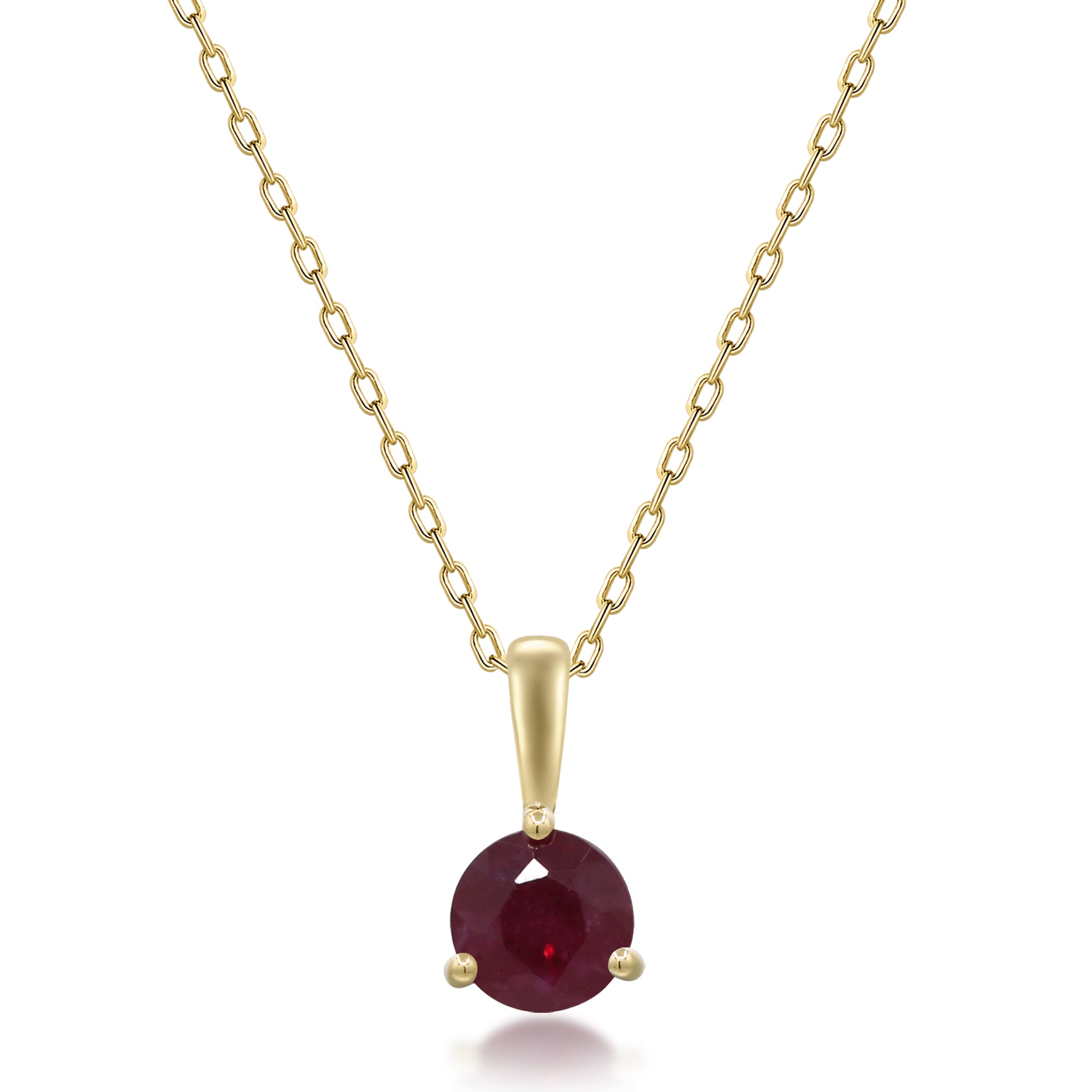 Decorate yourself in elegance with this Pendant is crafted from 10-karat Yellow Gold by Gin & Grace. This Pendant is made up of Round-Cut Mozambique Ruby (1 Pcs) 0.68 carat. This Pendant is weight 0.29 grams. This delicate Pendant is polished to a high finish shine.