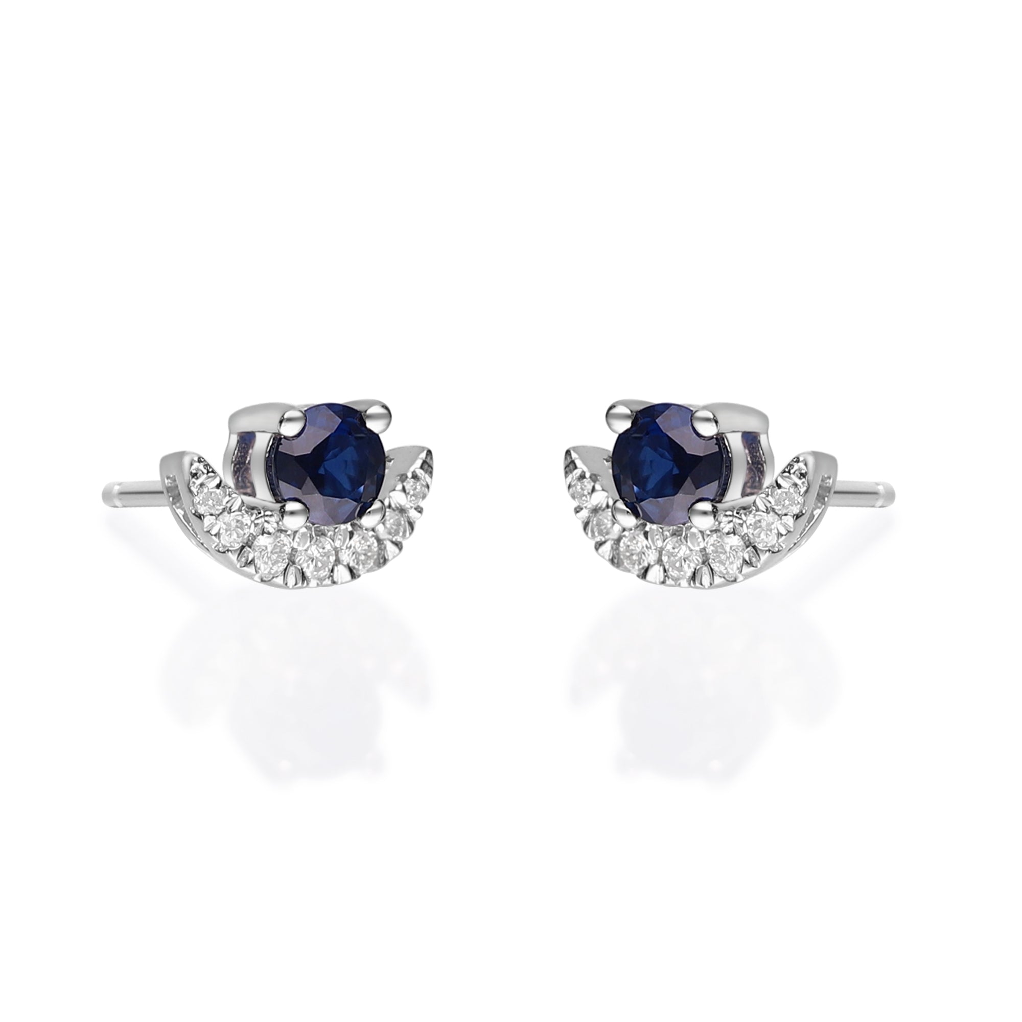 Decorate yourself in elegance with this Earring is crafted from 10-karat White Gold by Gin & Grace. This Earring is made up of 3.5 mm Round-Cut Ceylon Blue Sapphire (2 pcs) 0.43 carat and Round-cut Diamond (14 pcs) 0.08 Carat. This Earring is weight 1.28 grams. This delicate Earring is polished to a high finish shine.