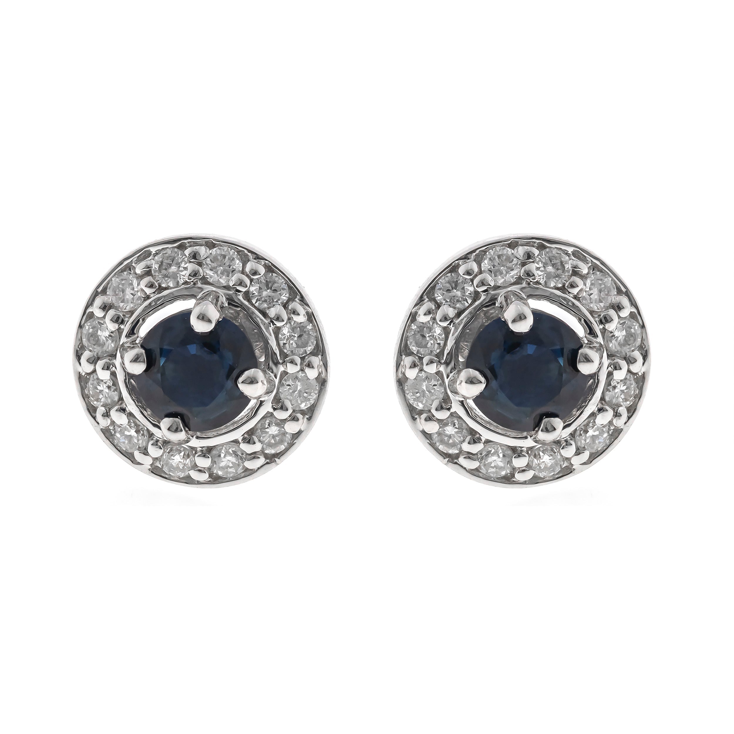 Delilah 10K White Gold Round-Cut Blue Sapphire Earrings