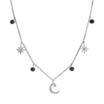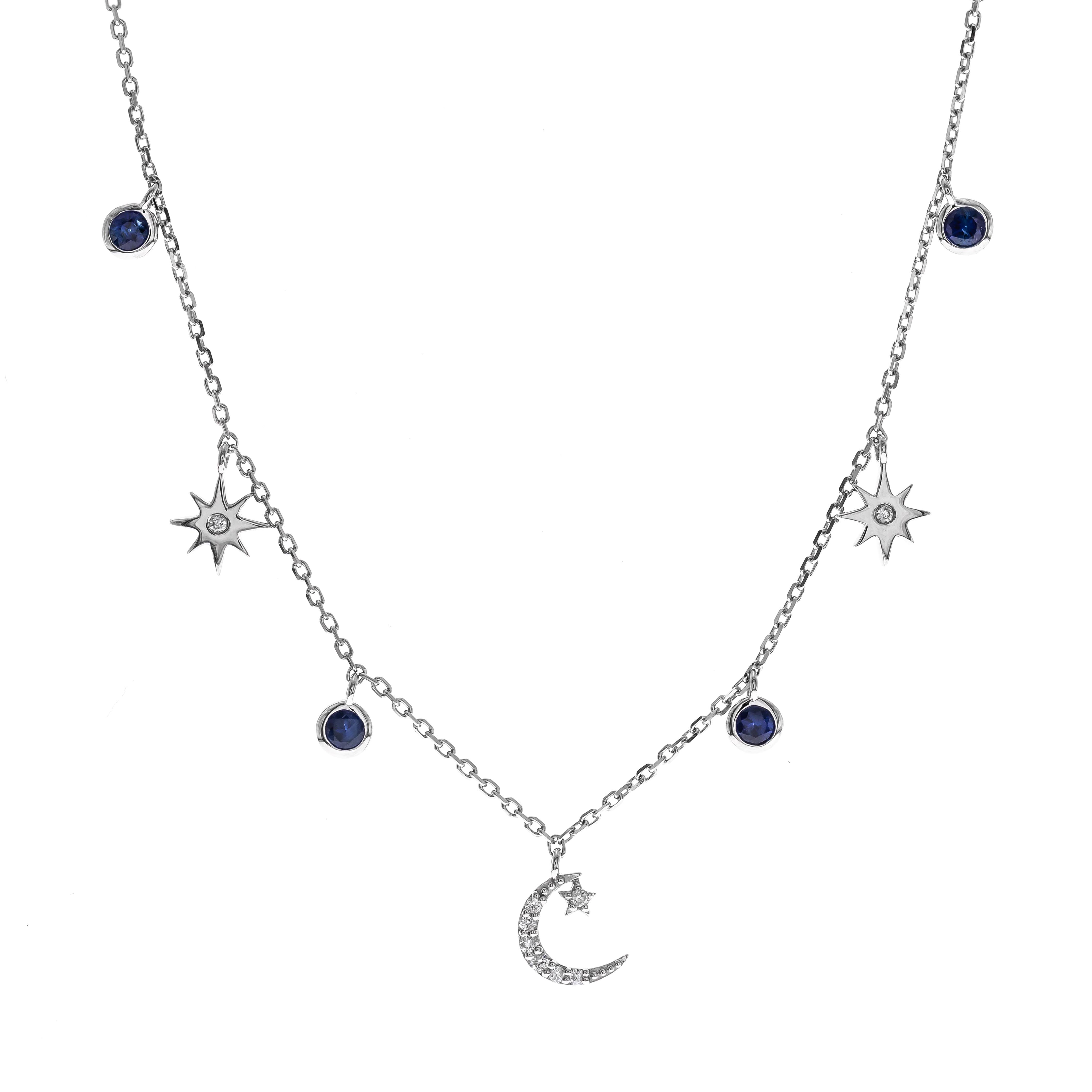 Decorate yourself in elegance with this Necklace is crafted from 10K White Gold by Gin & Grace. This Necklace is made up of Round-Cut Blue Sapphire (4 pcs) 0.32 carat and Round-cut White Diamond (9 Pcs) 0.05 Carat. This Necklace is weight 1.53 grams. This delicate Necklace is polished to a high finish shine.