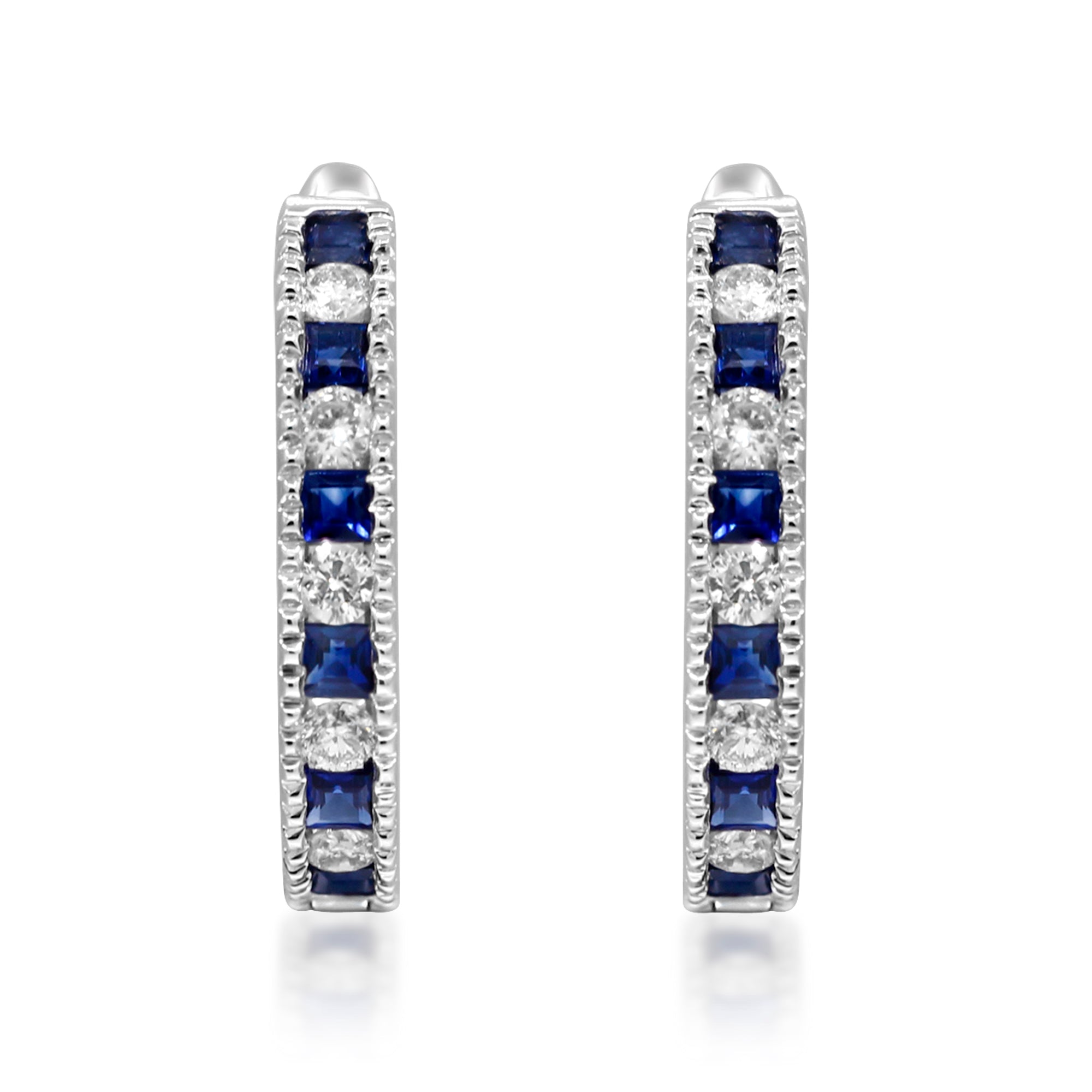 Stunning, timeless and classy eternity Unique Earring. Decorate yourself in luxury with this Gin & Grace Earring. The 14K White Gold jewelry boasts Square-Cut Prong Setting Genuine Ceylon Blue Sapphire (12 pcs) 0.64 Carat, along with Natural Round cut white Diamond (10 Pcs) 0.31 Carat, accent stones for a lovely design. This Earring is weight 2.99 grams. Crafted with 14K White Gold, this delicate Earring is polished to a high finish shine.