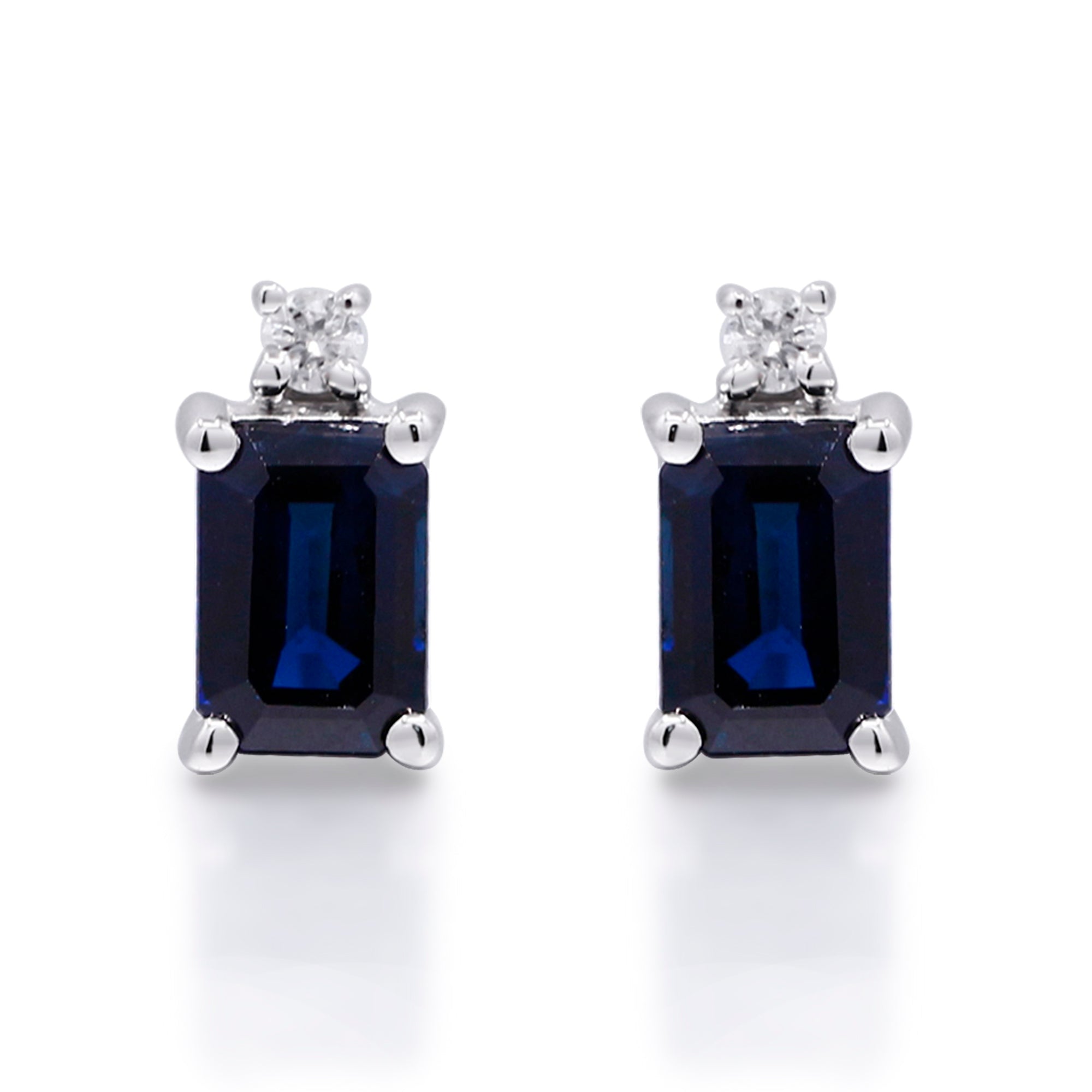 Decorate yourself in elegance with this Earring is crafted from 10K White Gold by Gin & Grace Earring. This Earring is made up of 4X6 mm Emerald-Shape prong setting Ceylon Blue Sapphire (2 pcs) 1.36 Carat and Round-Cut prong setting Diamond (2 pcs) 0.05 Carat. This Earring is weight 1.34 grams. This delicate Earring is polished to a high finish shine. Simple Stud clasps keep these earrings securely fastened.