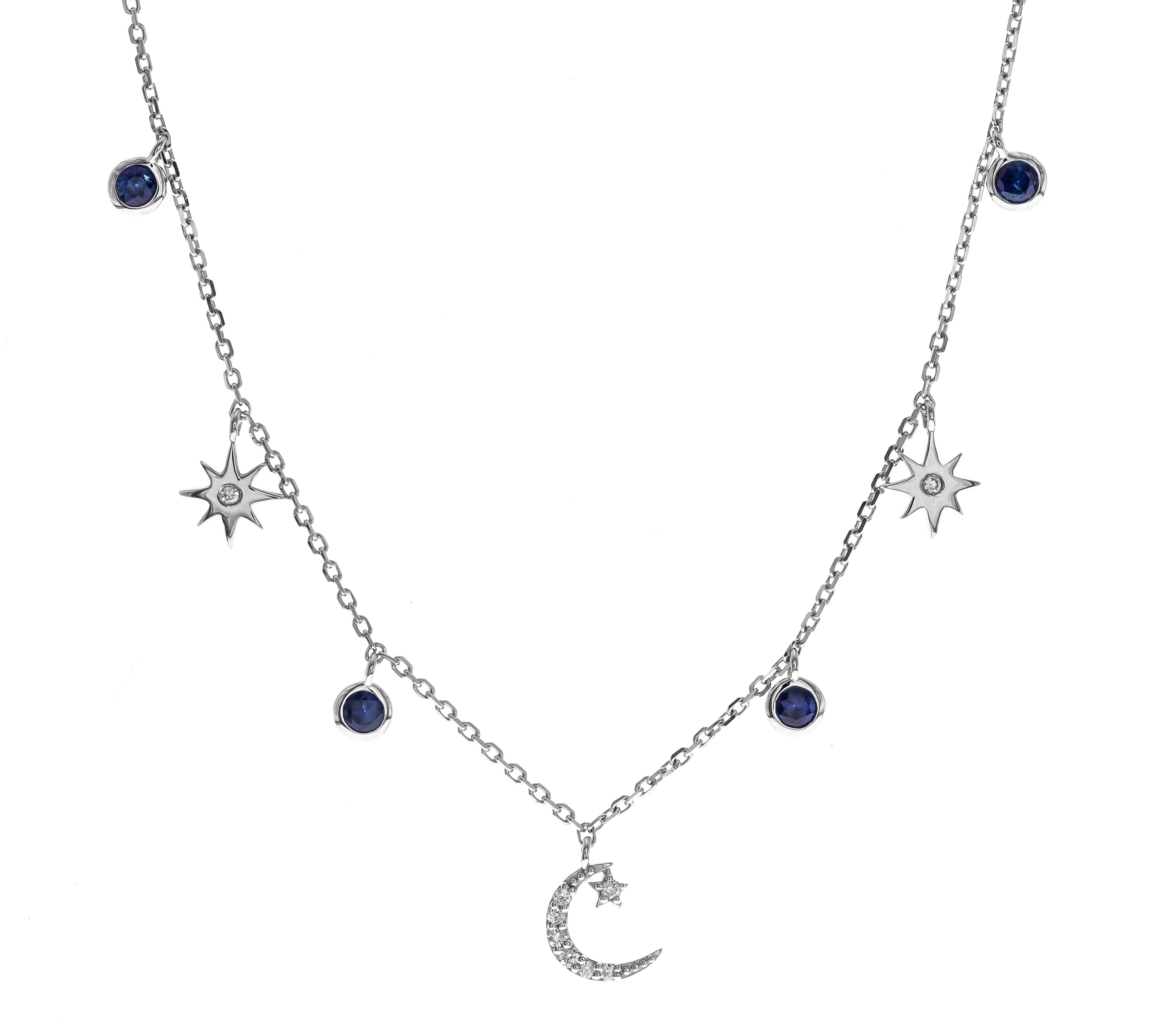 Elsie 10K White Gold Round-Cut Blue Sapphire Necklace