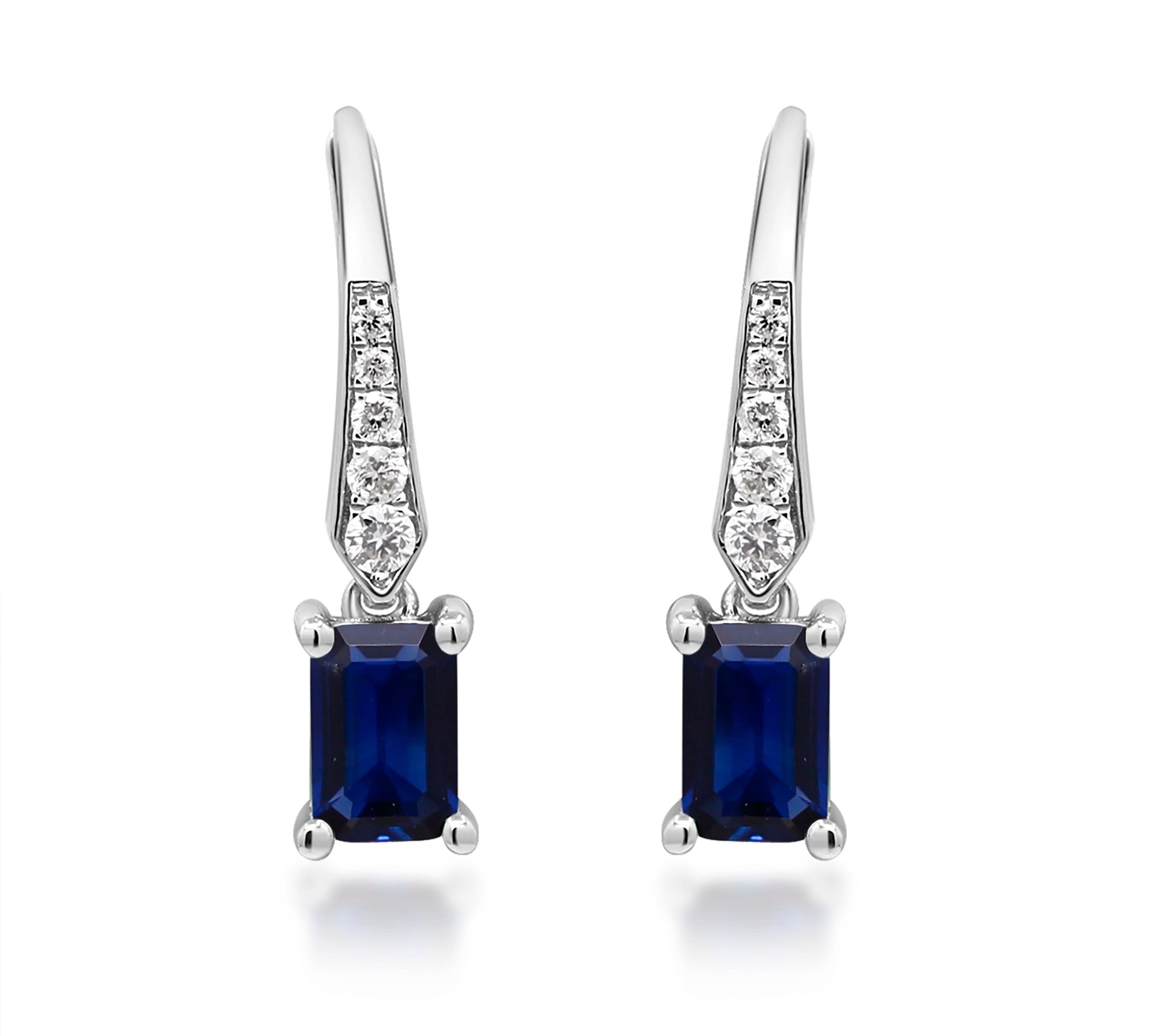 Ruth 14K White Gold Square-Cut Ceylon Blue Sapphire Earring