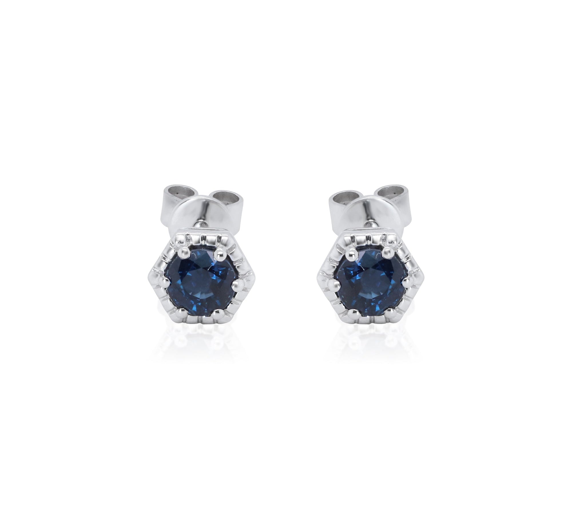 Billie 14K White Gold Round-Cut Ceylon Blue Sapphire Earring