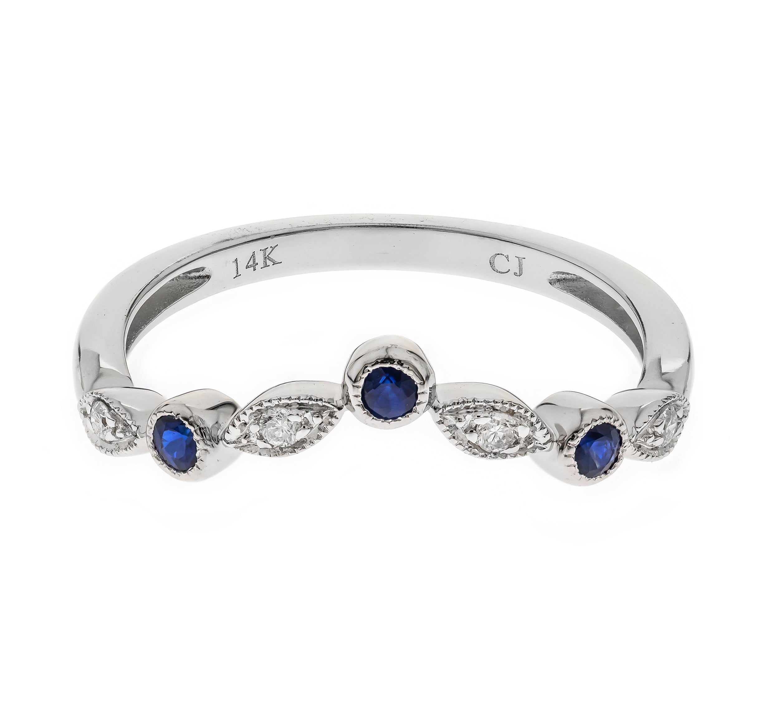 June 10K White Gold Marquise-Cut Blue Sapphire Ring