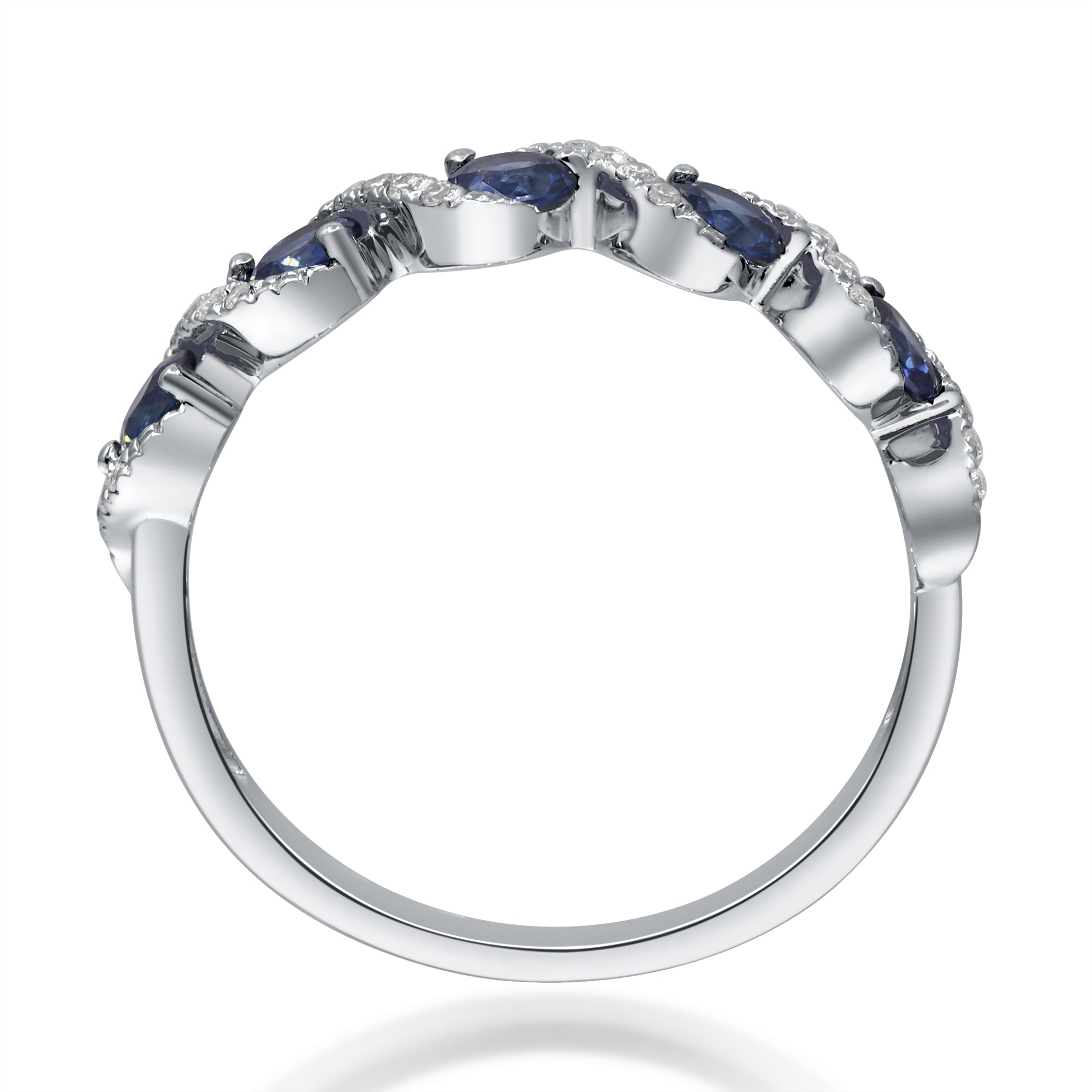 Stunning, timeless and classy eternity Unique Ring. Decorate yourself in luxury with this Gin & Grace Ring. The 10K White Gold jewelry boasts Round-Cut Prong Setting Natural Blue Sapphire (5 pc) 0.60 Carat, along with Natural Round cut white Diamond (24 Pcs) 0.09 Carat, accent stones for a lovely design. This Ring is weight 1.98 grams. Crafted with 10K White Gold, this delicate Ring is polished to a high finish shine.