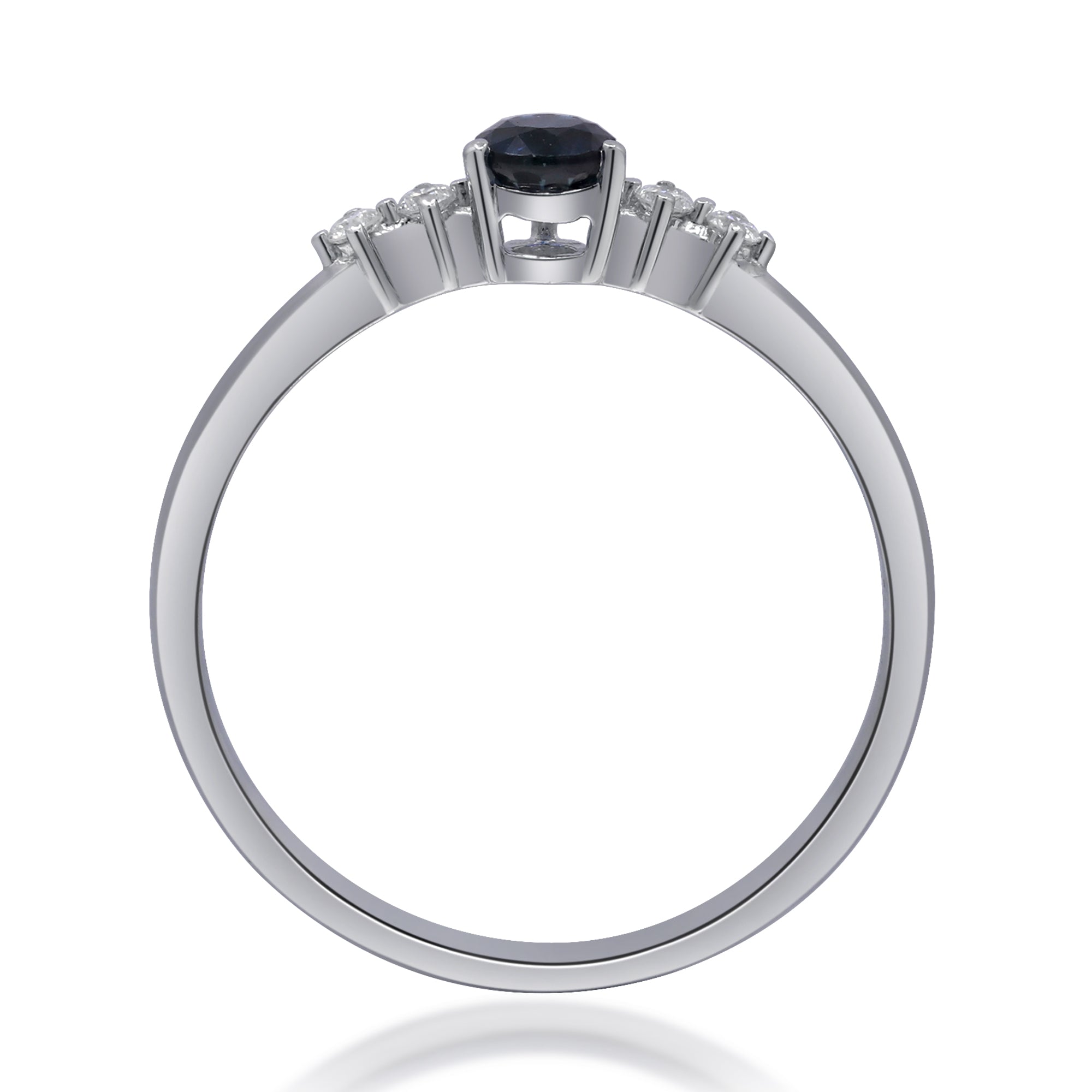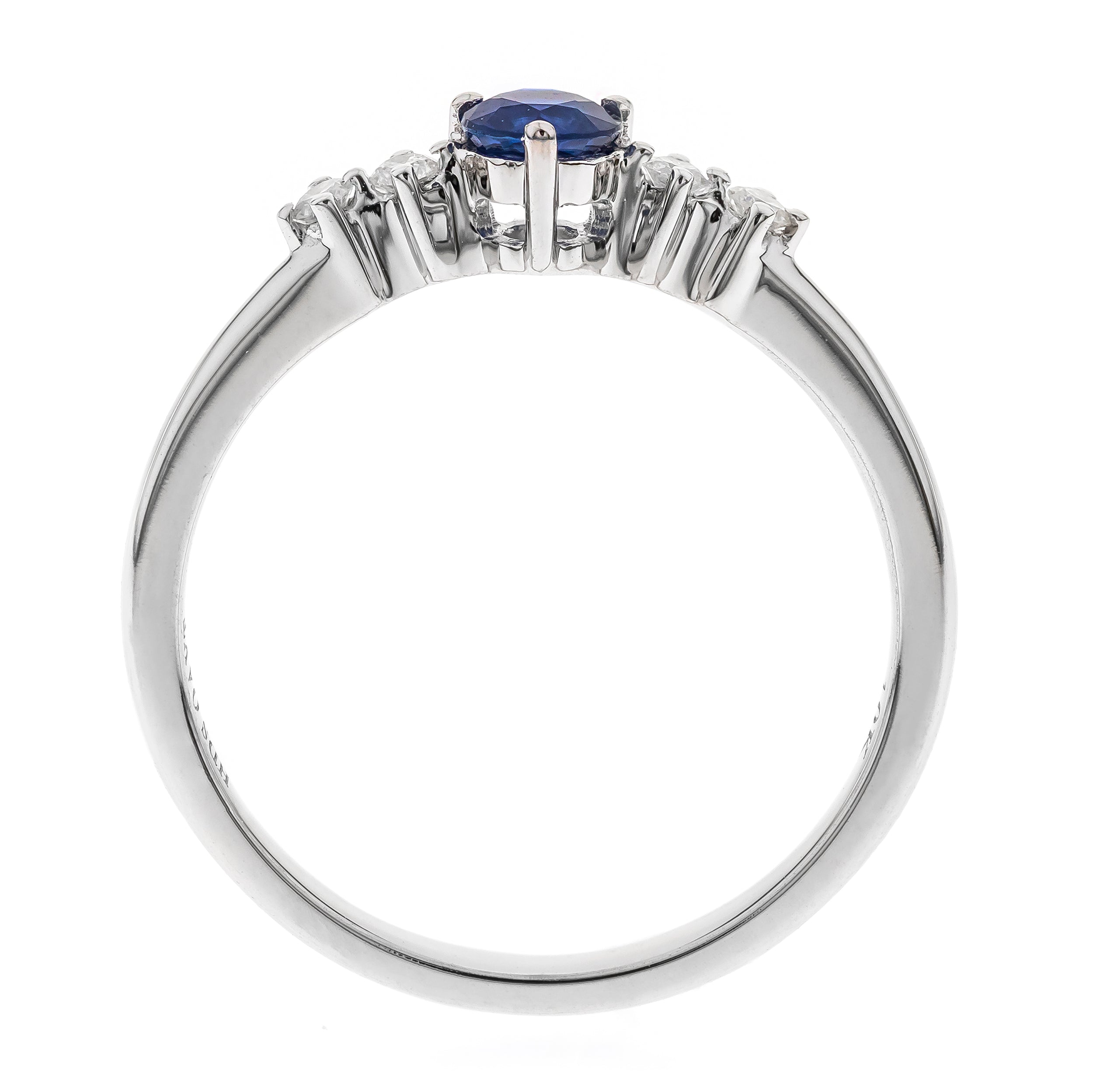 Stunning, timeless and classy eternity Unique Ring. Decorate yourself in luxury with this Gin & Grace Ring. The 10K White Gold jewelry boasts Round-Cut Prong Setting Natural Blue Sapphire (1 pc) 0.24 Carat, along with Natural Round cut white Diamond (4 Pcs) 0.06 Carat, accent stones for a lovely design. This Ring is weight 1.50 grams. Crafted with 10K White Gold, this delicate Ring is polished to a high finish shine.
