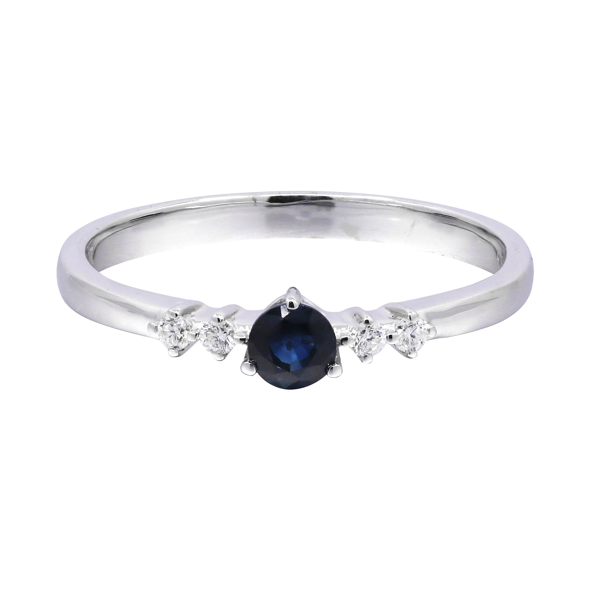 Valerie 10K White Gold Round-Cut Blue Sapphire Ring