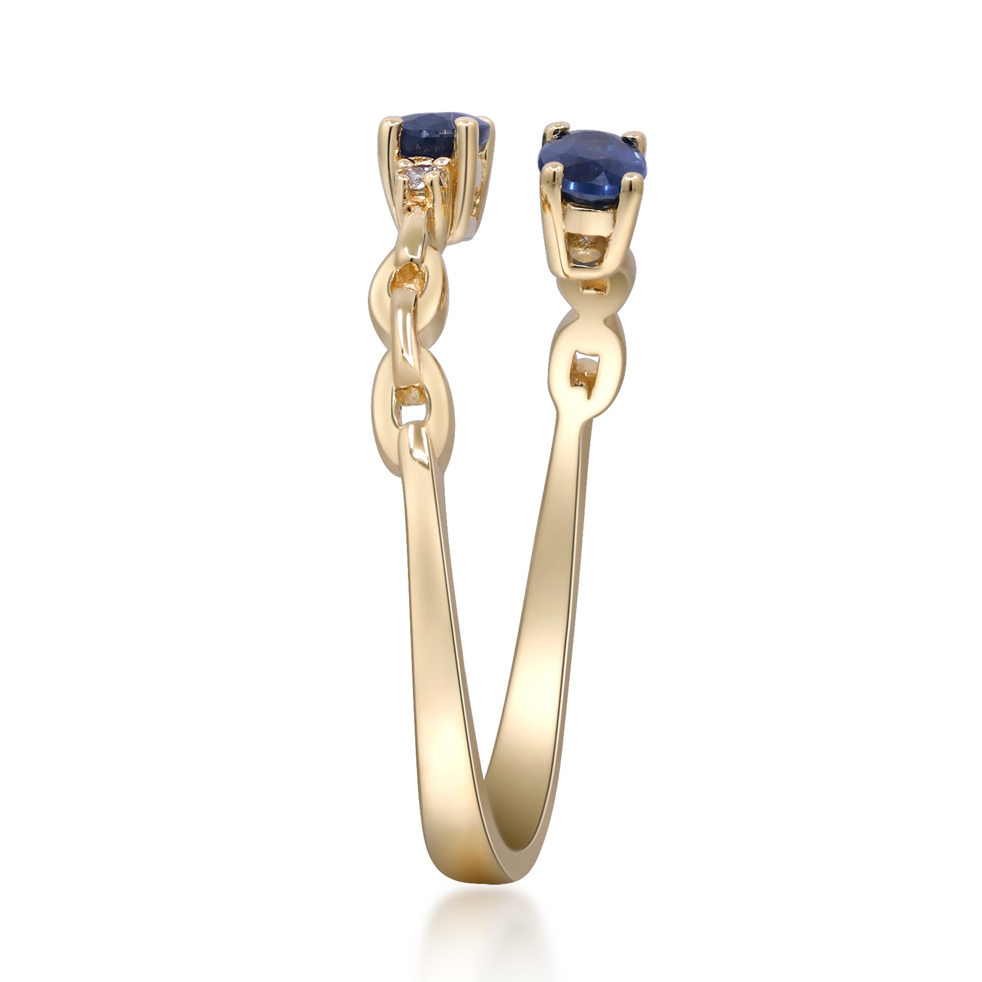 Stunning, timeless and classy eternity Unique Ring. Decorate yourself in luxury with this Gin & Grace Ring. This Ring is made up of Oval-Cut Prong Setting Genuine Blue Sapphire (2 pc) 0.65 Carat and Round-Cut Prong Setting Natural Diamond (2 pcs) 0.02 Carat accent stones for a lovely design. This Ring is weight 1.82 grams. The Ring is crafted of shining 14K Yellow Gold and is completed by a highly polished finish.
