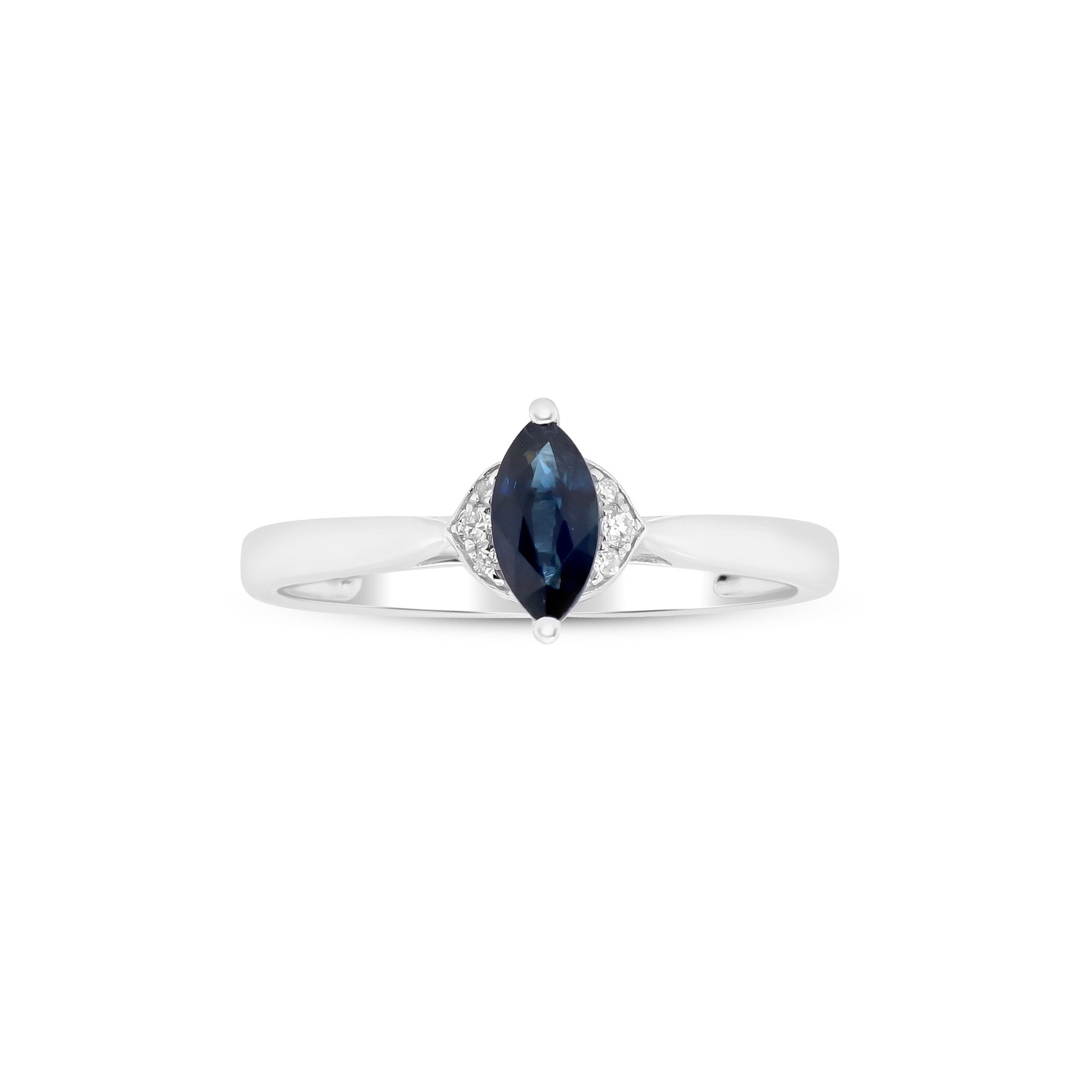 June 10K White Gold Marquise-Cut Blue Sapphire Ring