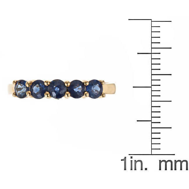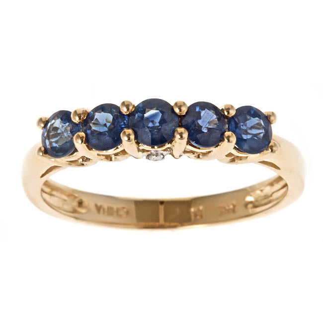 Stunning, timeless and classy eternity Unique ring. Decorate yourself in luxury with this The Loupe Club ring. This ring is made up of Round-Cut Prong Setting Ceylon Blue Sapphire (5 pcs) 1.13 Carat and Round-Cut Prong Setting white Diamond (2 pcs) 0.01 Carat accent stones for a lovely design. This ring is weight 1.60 grams. Crafted with 14k Yellow Gold, this delicate Ring is polished to a high finish shine.