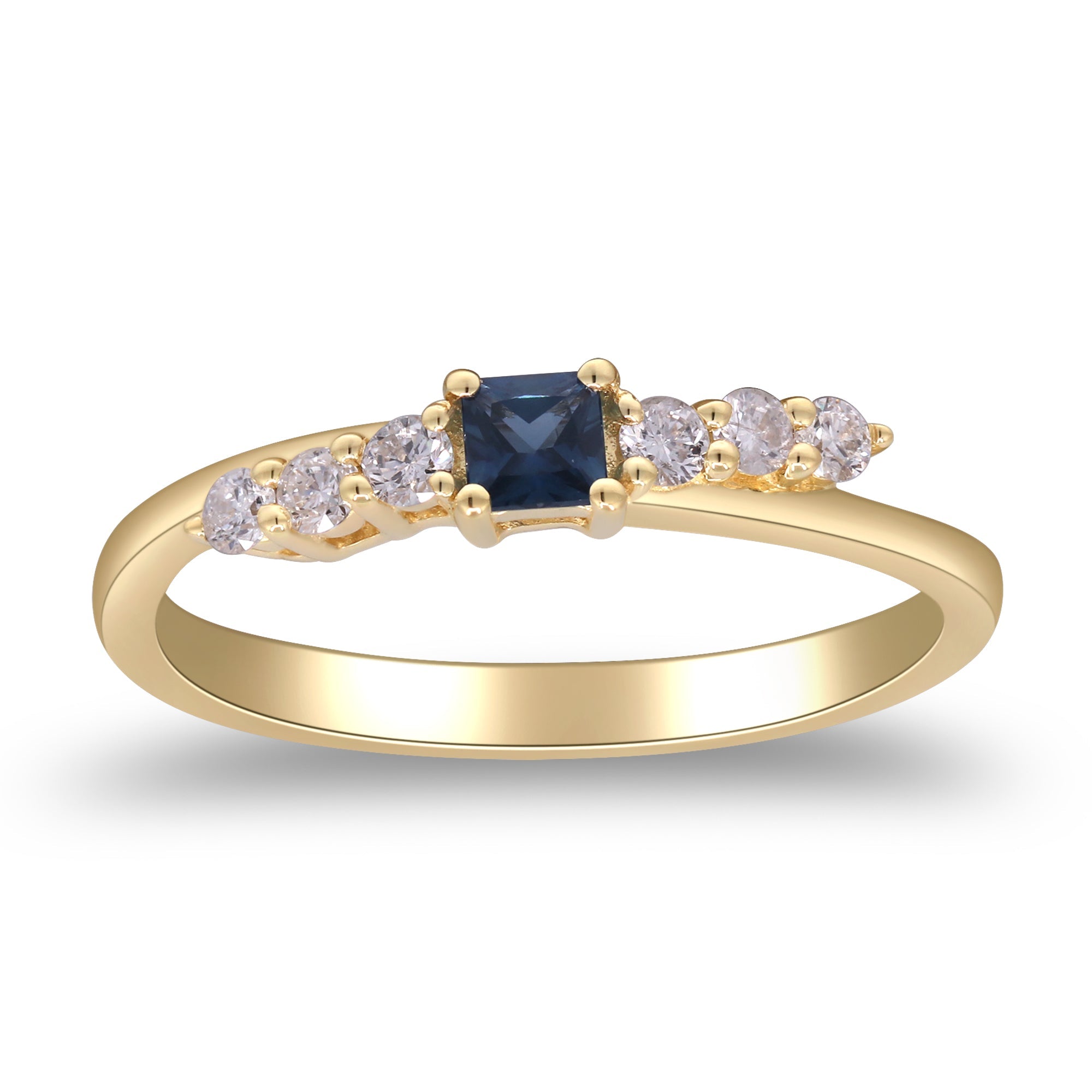 Stunning, timeless and classy eternity Unique Ring. Decorate yourself in luxury with this Gin & Grace Ring. This Ring is made up of Square-Cut Prong Setting Genuine Blue Sapphire (1 pc) 0.18 Carat and Round-Cut Prong Setting Natural Diamond (6 pcs) 0.18 Carat accent stones for a lovely design. This Ring is weight 1.96 grams. The Ring is crafted of shining 14K Yellow Gold and is completed by a highly polished finish.