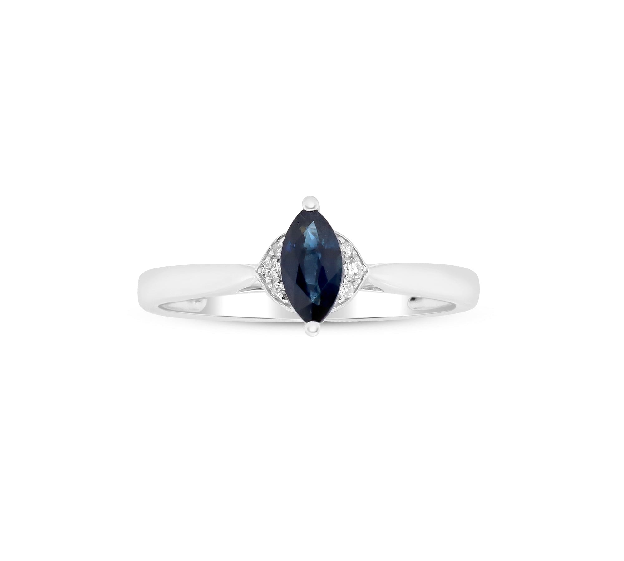 June 10K White Gold Marquise-Cut Blue Sapphire Ring