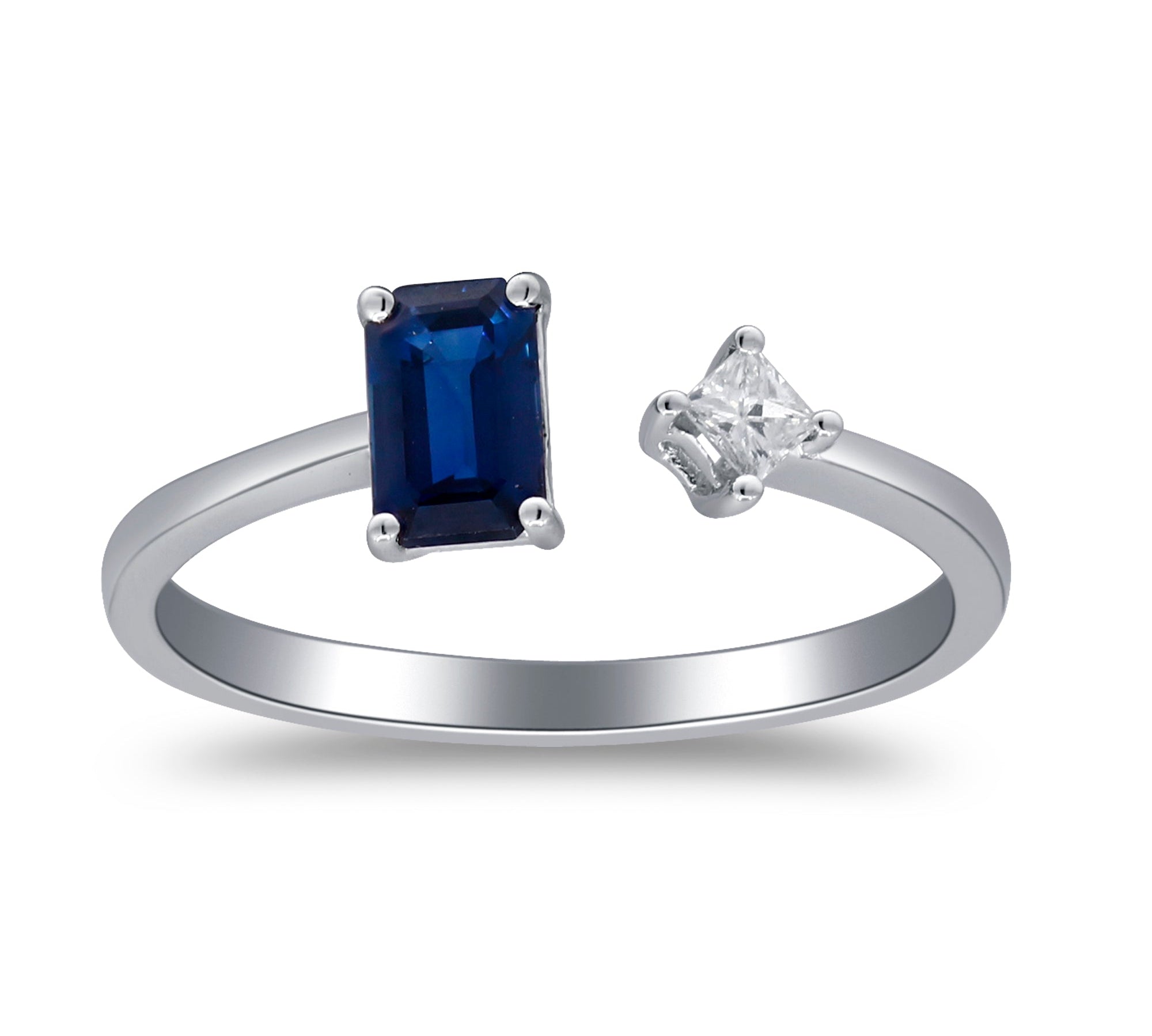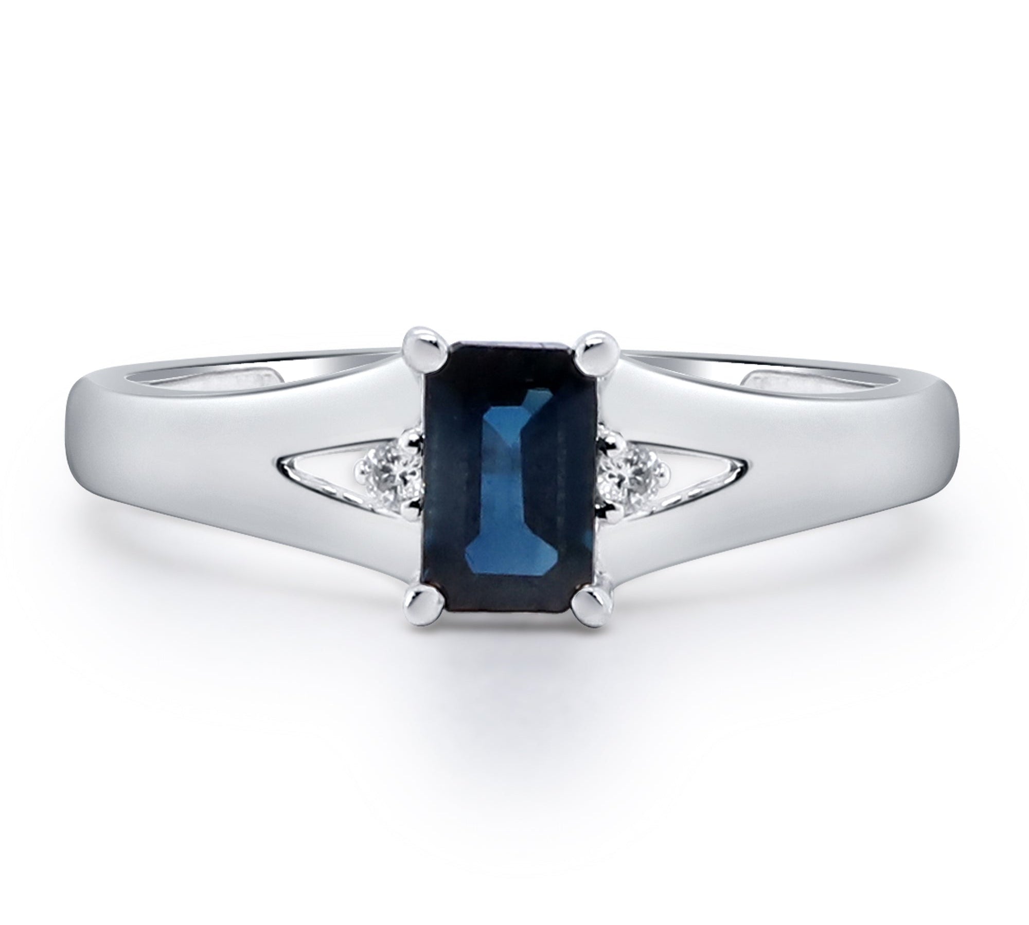Aliyah 10K White Gold Emerald-Cut Blue Sapphire Ring