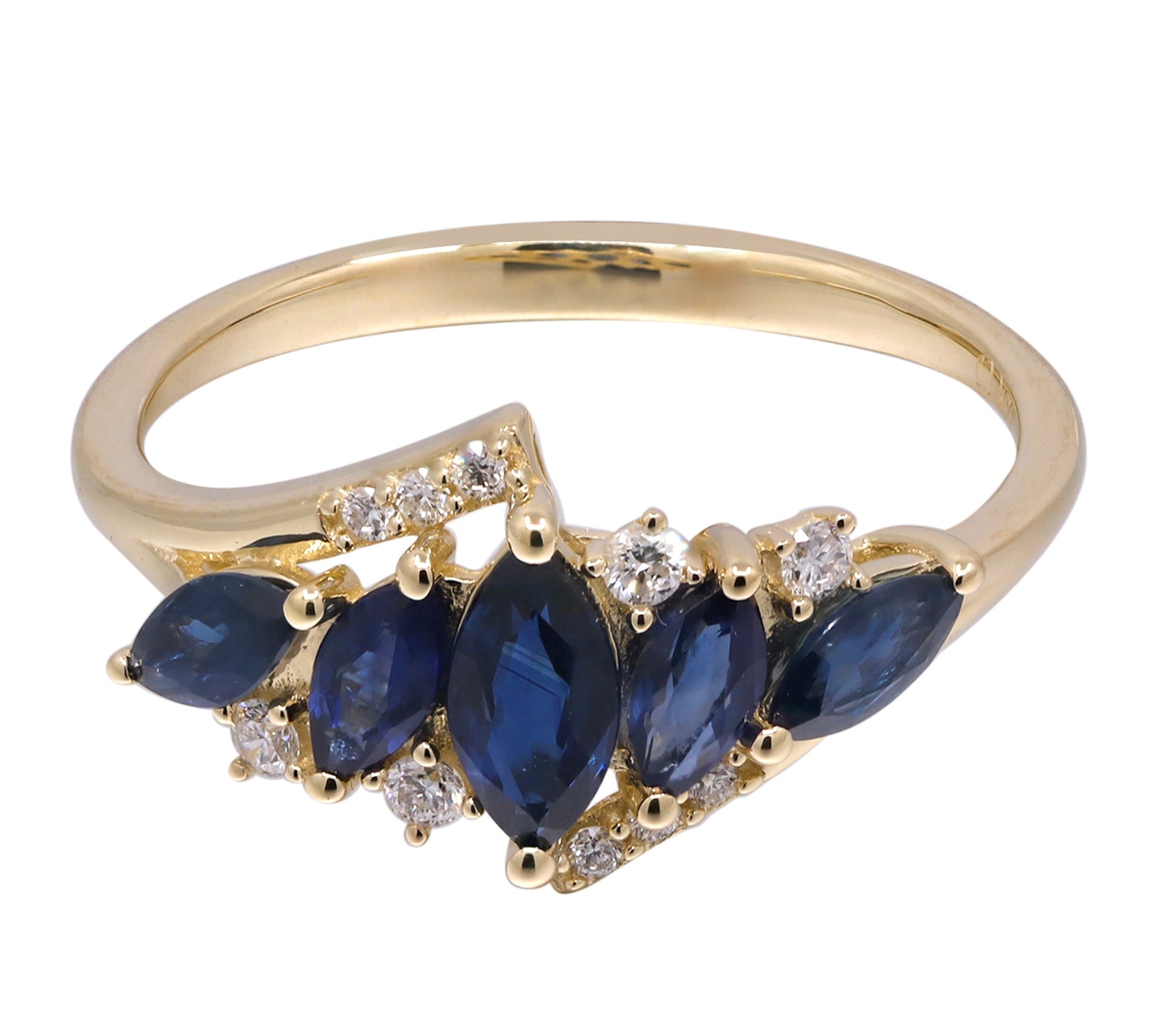 Daisy 14K Yellow Gold Marquise-Cut Blue Sapphire Ring
