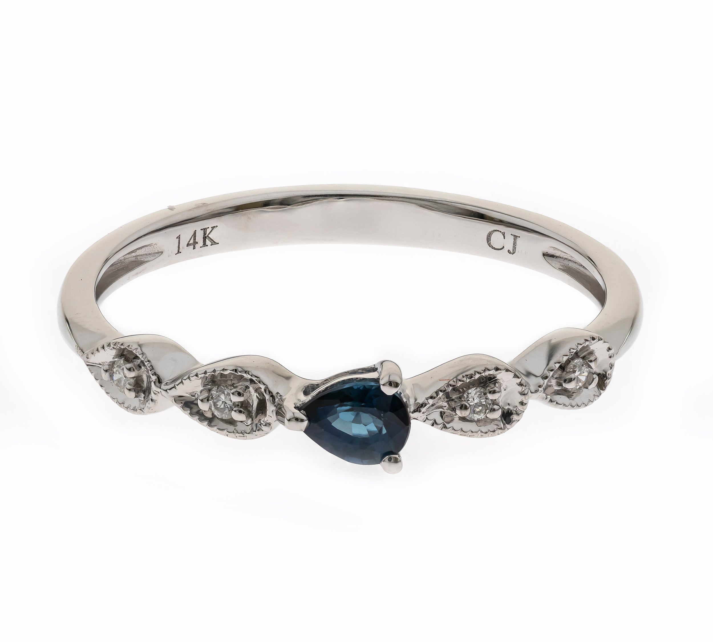 Madison 14K White Gold Pear-Cut Blue Sapphire Ring