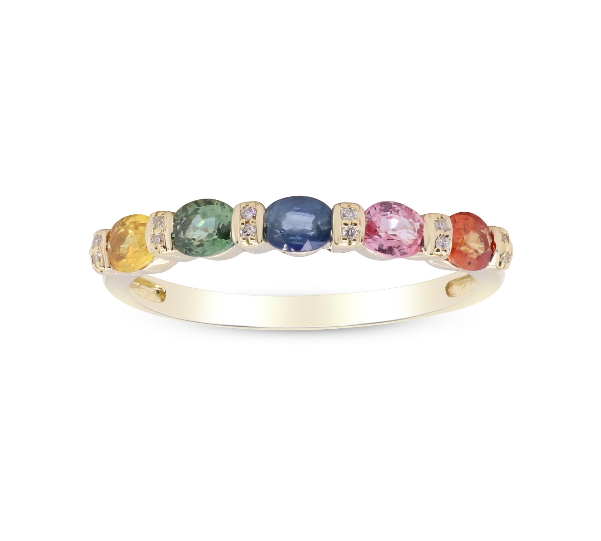 Royalty 10K Yellow Gold Oval-Cut Multi Sapphire Ring