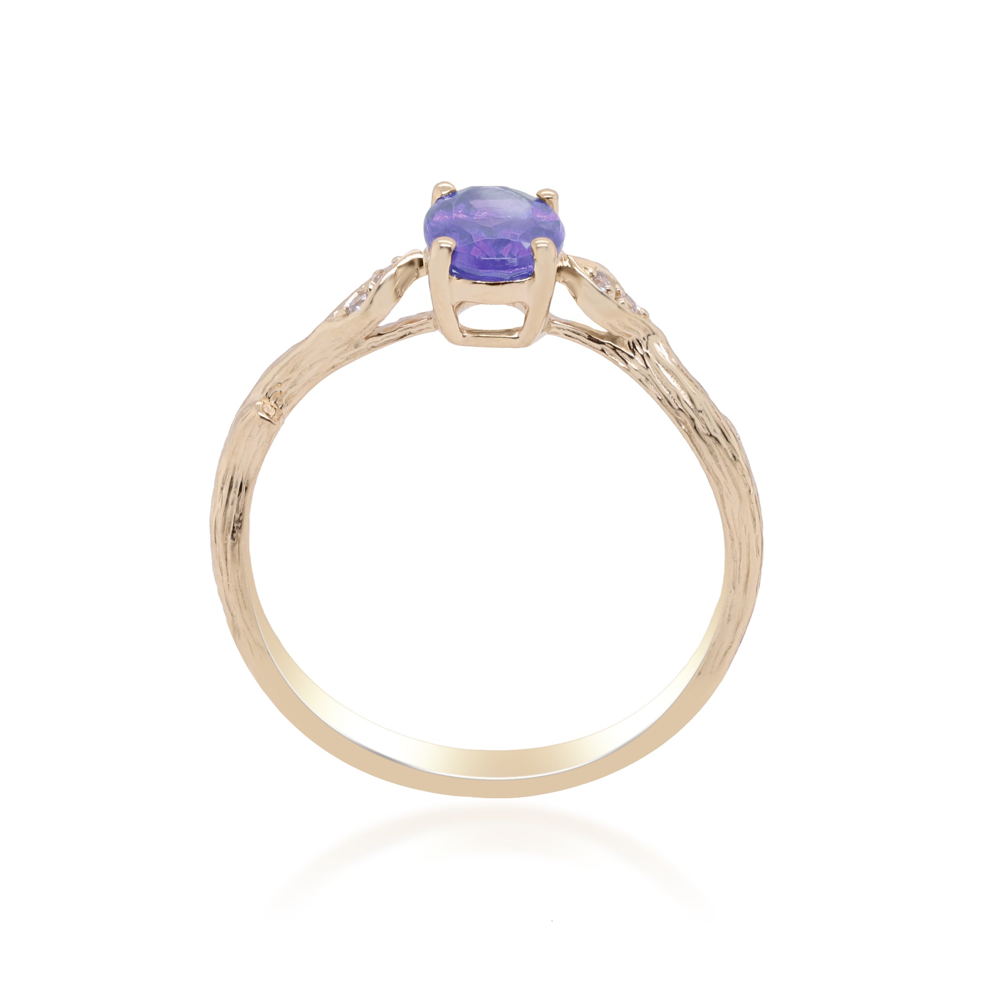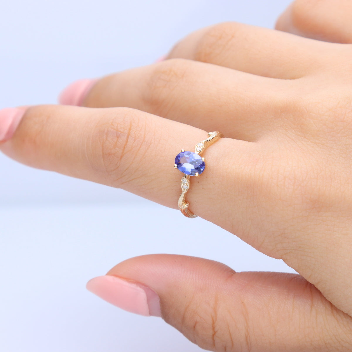 Decorate yourself in elegance with this Ring is crafted from 14-karat yellow Gold by Gin & Grace. This Ring is made up of 5*7MM Oval-Cut Tanzanian Tanzanite (1 pcs) 0.80 carat and round-cut diamond (4 Pcs) 0.03 Carat. This Ring is weight 1.78 grams. This delicate Ring is polished to a high finish shine.