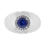 Decorate yourself in elegance with this Ring is crafted from 14-karat White Gold by Gin & Grace. This Ring is made up of 7.0mm Round-Cut Tanzanite (1 pcs) 1.29 carat, Rock Crystal (1 Pcs) 16.94 carat and round-cut diamond (18 Pcs) 0.22 Carat. This Ring is weight 4.27 grams. This delicate Ring is polished to a high finish shine.