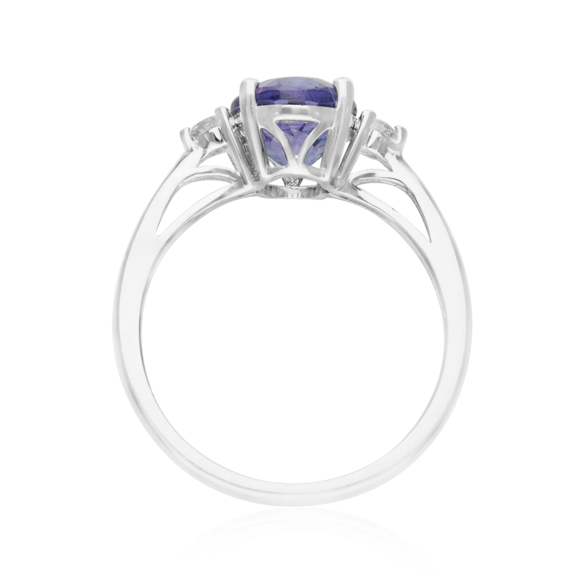 Stunning, timeless and classy eternity Unique Ring. Decorate yourself in luxury with this Gin & Grace Ring. The 14k White Gold jewelry boasts Oval-Cut Prong Setting Genuine Tanzanian Tanzanite (1 pcs) 2.15 Carat, along with Natural Round cut white Diamond (2 Pcs) 0.12 Carat, accent stones for a lovely design. This Ring is weight 1.90 grams. Crafted with 14k White Gold, this delicate Ring is polished to a high finish shine.