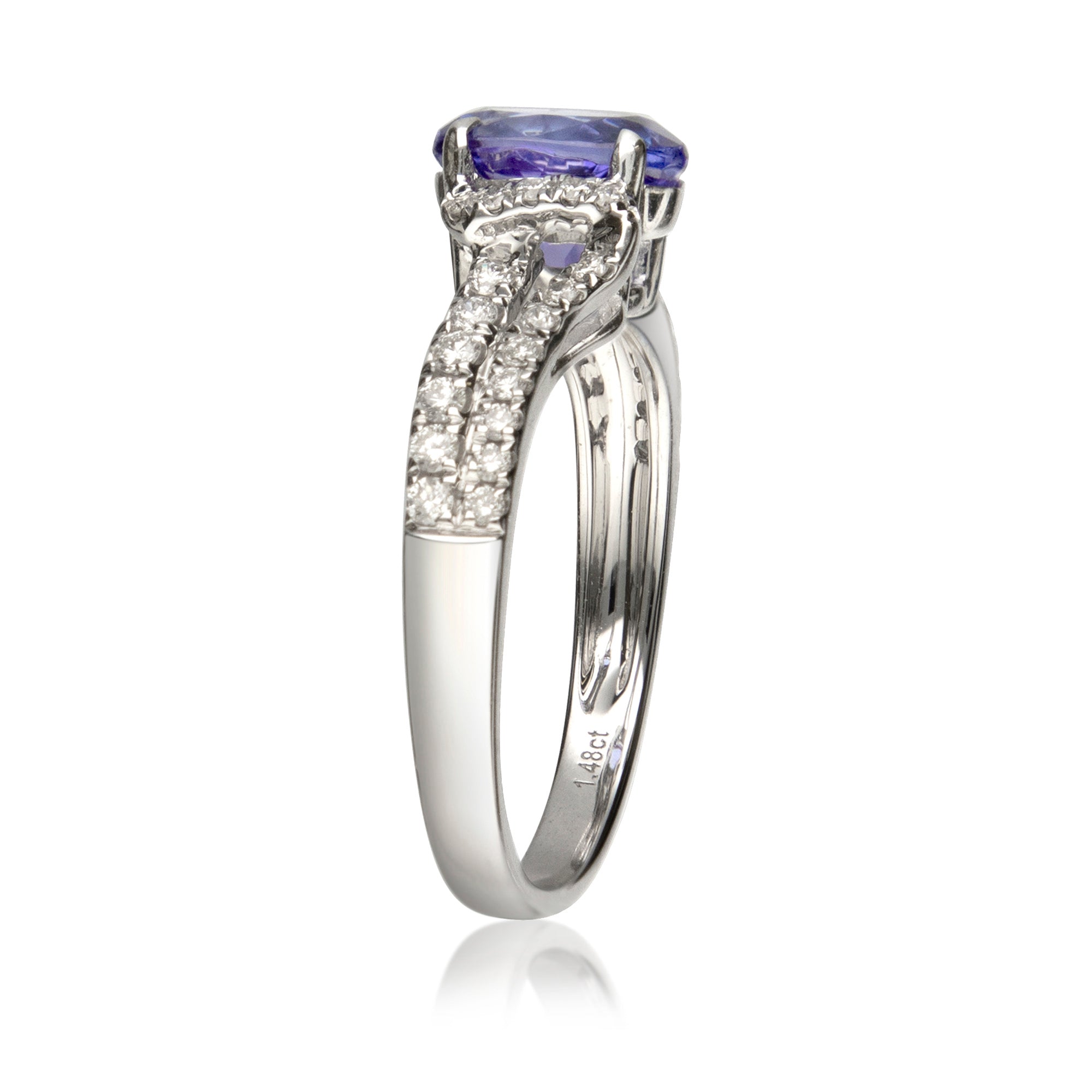 Stunning, timeless and classy eternity Unique ring. Decorate yourself in luxury with this Gin & Grace ring. The 14k White Gold jewelry boasts Oval-Cut Prong Setting Genuine Tanzanian Tanzanite (1pcs) 1.48 Carat and Round-Cut Prong Setting Diamond (38 pcs) 0.33 Carat accent stones for a lovely design. This ring is weight 2.96 grams. Crafted with 14k White Gold, this delicate Ring is polished to a high finish shine.