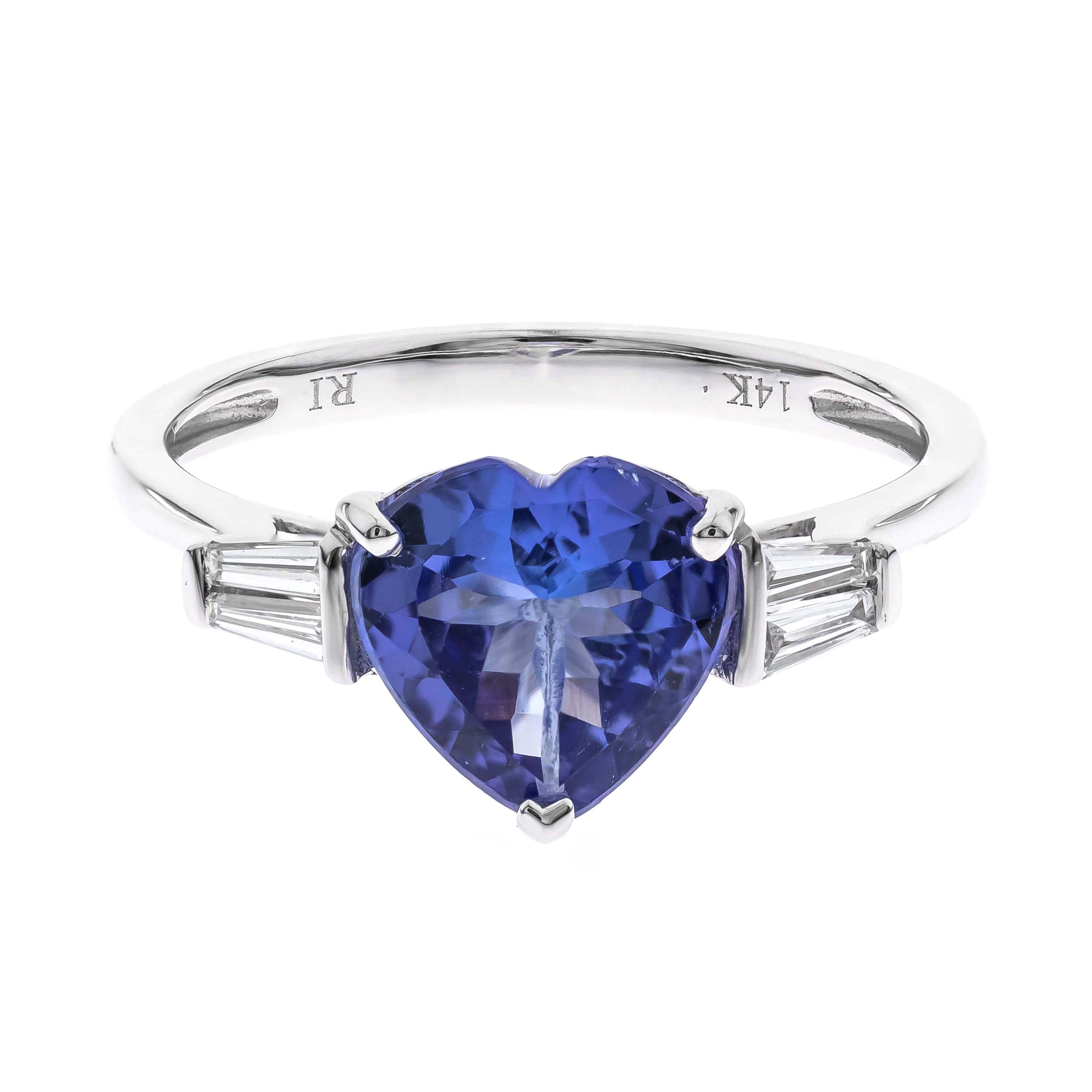 Decorate yourself in elegance with this Ring is crafted from 14-karat White Gold by Gin & Grace.This Ring is made up of 8.5 mm Heart Shape Tanzanian Tanzanite(1 pcs) 2.44 carat and Baguette-cut White Diamond (4 Pcs) 0.15 Carat. This Ring is weight 1.93 grams. This delicate Ring is polished to a high finish shine.