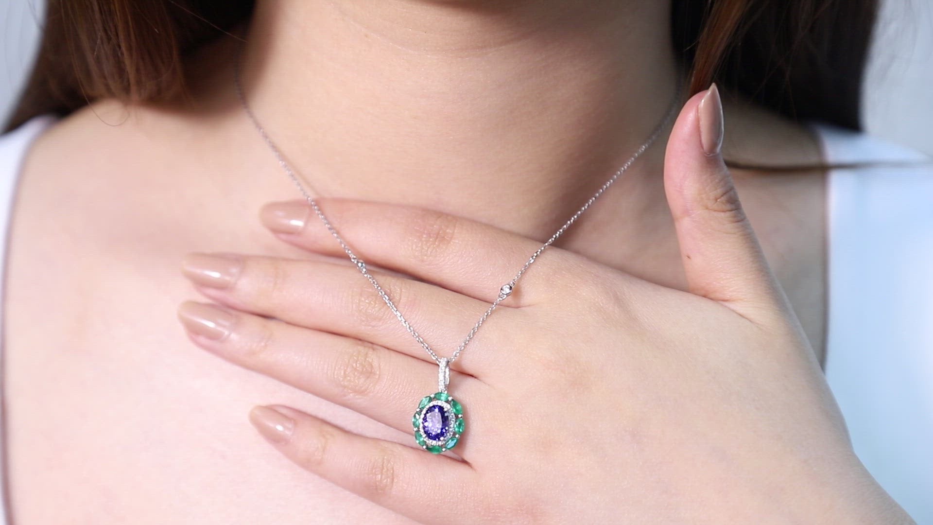Aurora 14K White Gold Oval-Cut Tanzanian Tanzanite Pendant