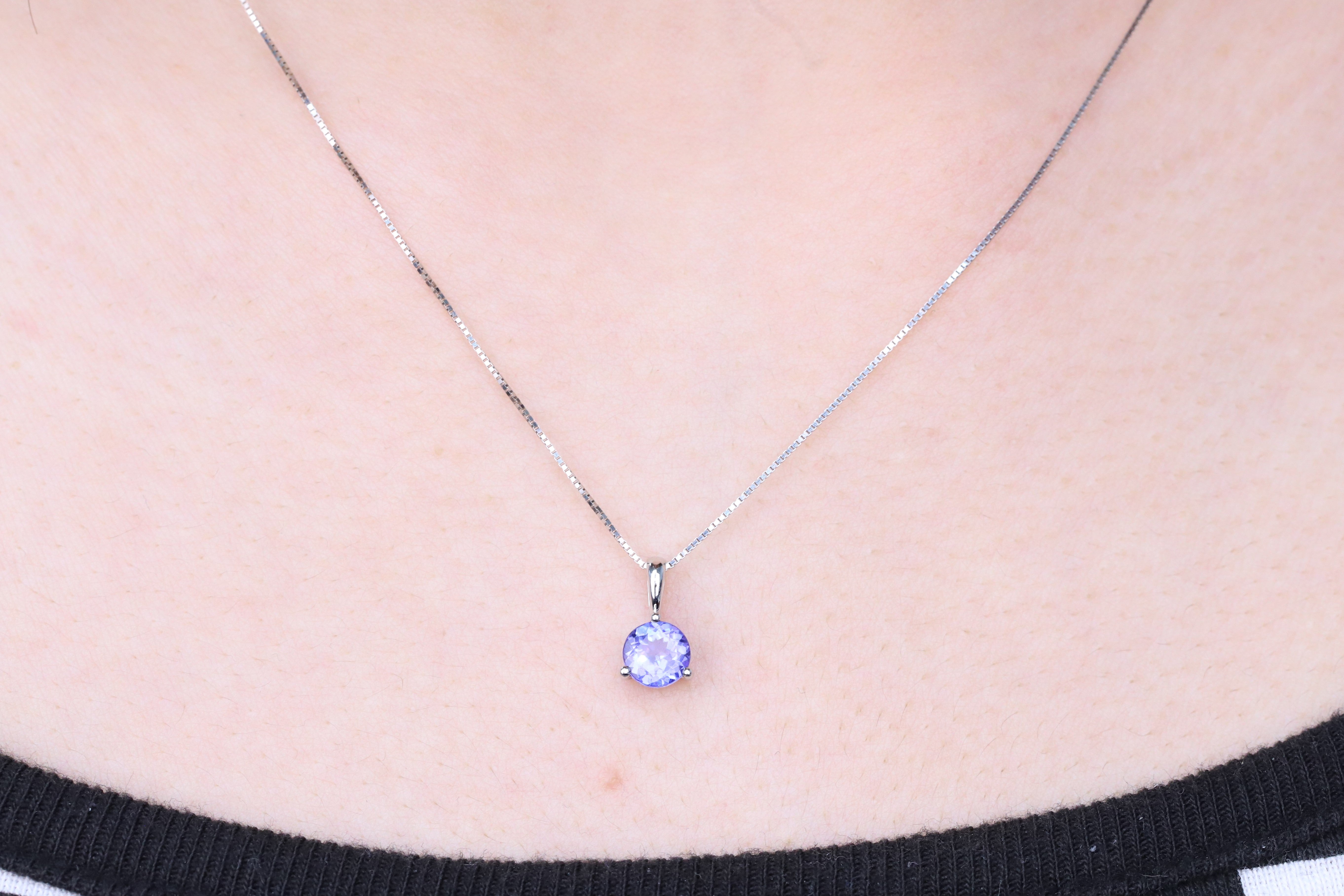 Decorate yourself in elegance with this Pendant is crafted from 10-karat White Gold by Gin & Grace. This Pendant is made up of Round-Cut Tanzanian Tanzanite (1 Pcs) 0.77 carat. This Pendant is weight 0.34 grams. This delicate Pendant is polished to a high finish shine.
