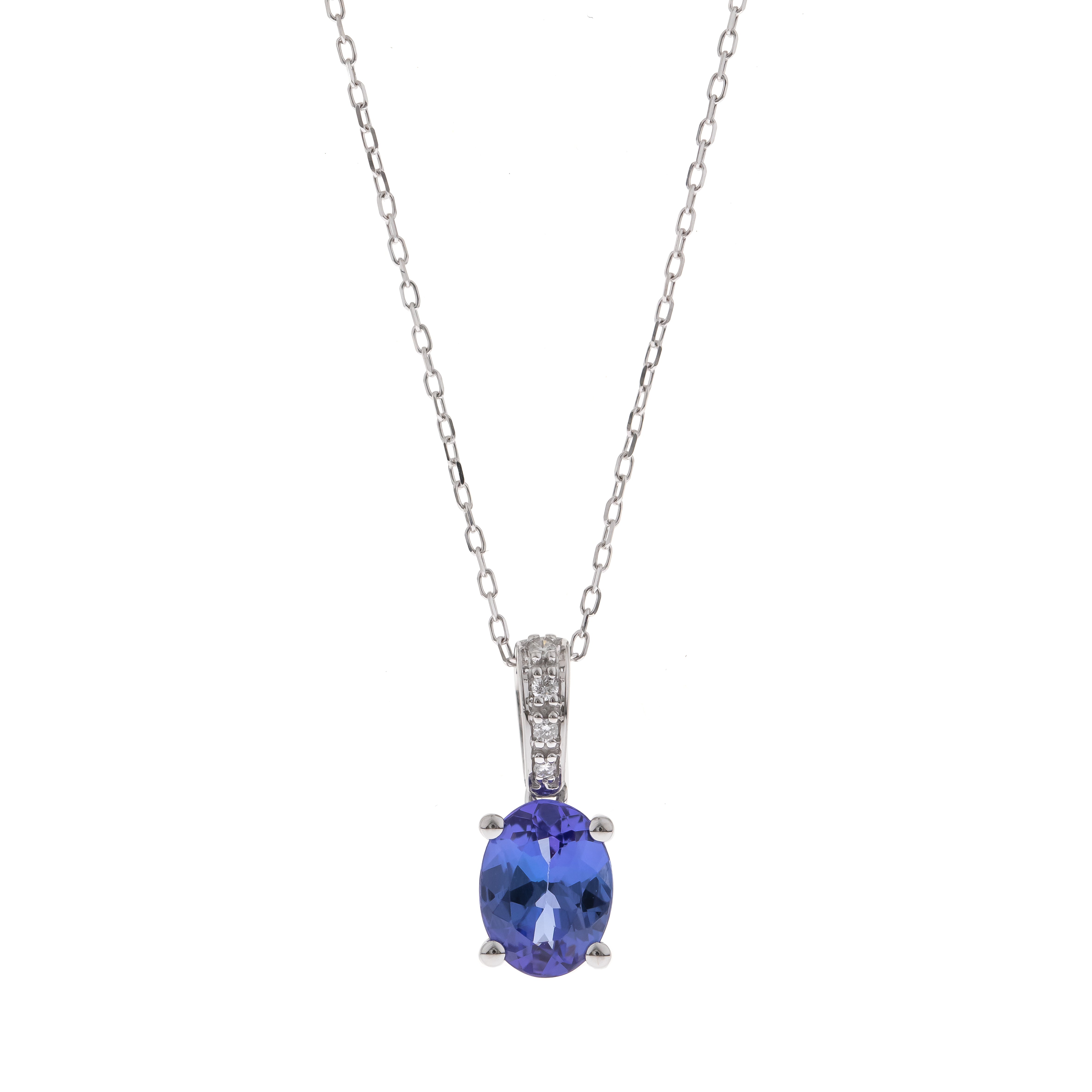 Decorate yourself in elegance with this Pendant is crafted from 14-karat White Gold by Gin & Grace Pendant. This Pendant is made up of Oval-Cut Prong setting Tanzanian Tanzanite (1 Pcs) 1.41 Carat and Round-Cut Prong setting White Diamond (4 Pcs) 0.03 Carat. This Pendant is weight 0.79 grams. The gorgeous Pendant hangs from an 18-inch wheat chain. This delicate Pendant is polished to a high finish shine.