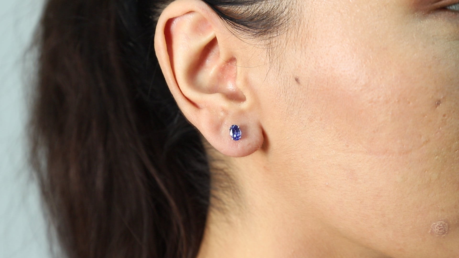 Brookes 10K White Gold Oval-Cut Tanzanian Tanzanite Earring
