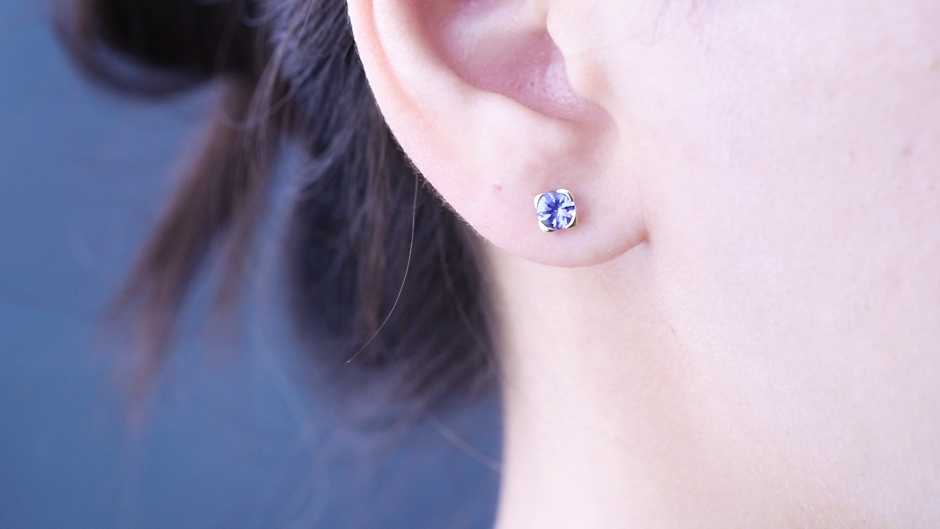 Alice 10K Yellow Gold Round-Cut Tanzanian Tanzanite Earring