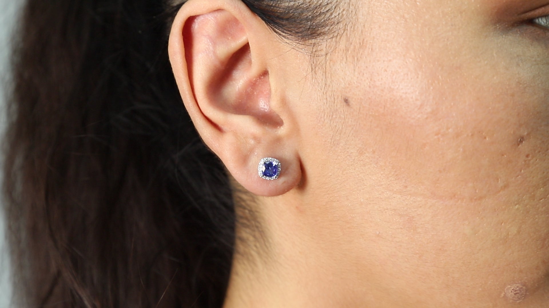 Alivia 14K White Gold Cushion-Cut Tanzanian Tanzanite Earring