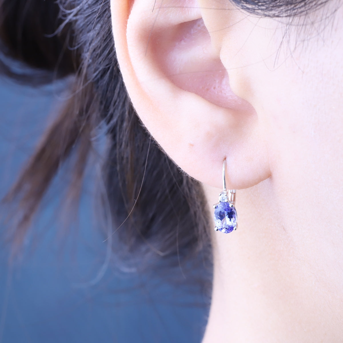 Decorate yourself in elegance with this Earring is crafted from 10K White Gold by Gin & Grace Earring. This Earring is made up of 5X7 mm Oval-Cut prong setting Genuine Tanzanian Tanzanite (2 pcs) 1.61 Carat and Round-Cut prong setting Natural Diamond (2 pcs) 0.05 Carat. This Earring is weight 1.23 grams. This delicate Earring is polished to a high finish shine. Simple clasps keep these earrings securely fastened.