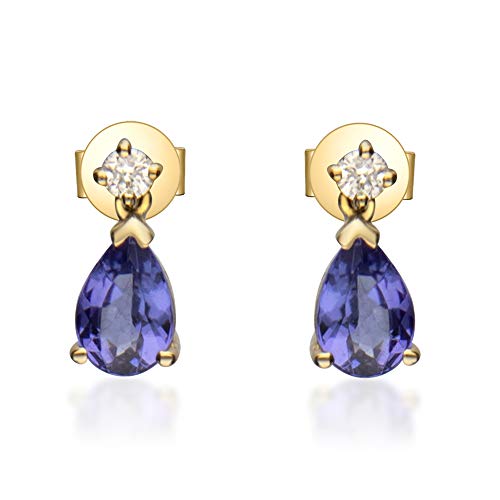Decorate yourself in elegance with this Earring is crafted from 14K Yellow Gold by Gin & Grace Earring. The jewelry boasts 4X6 mm Pear-Cut prong setting Genuine Tanzanian Tanzanite (2pcs) 0.90 Carat and Round-Cut prong setting Natural Diamond (2 pcs) 0.07 Carat. This Earring is weight 1.37 grams. This delicate Earring is polished to a high finish shine. This jewelry is sure to offer an elegant look to any outfit and any occasion.9