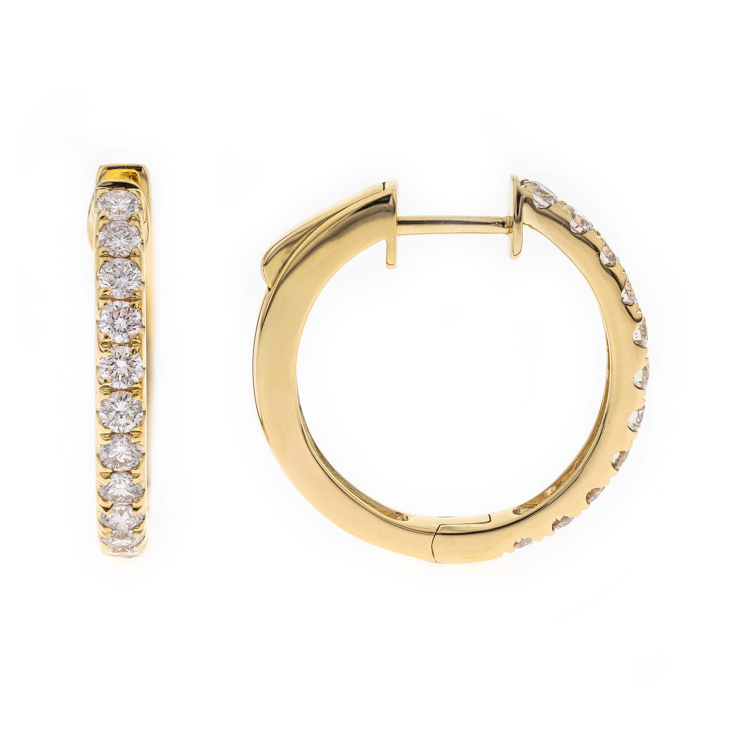 Decorate yourself in elegance with this Earring is crafted from 14-karat Yellow Gold by Gin & Grace. This Earring is made up of Round-cut White Diamond (22 Pcs) 0.90 Carat. This Earring is weight 5.18 grams. This delicate Earring is polished to a high finish shine.