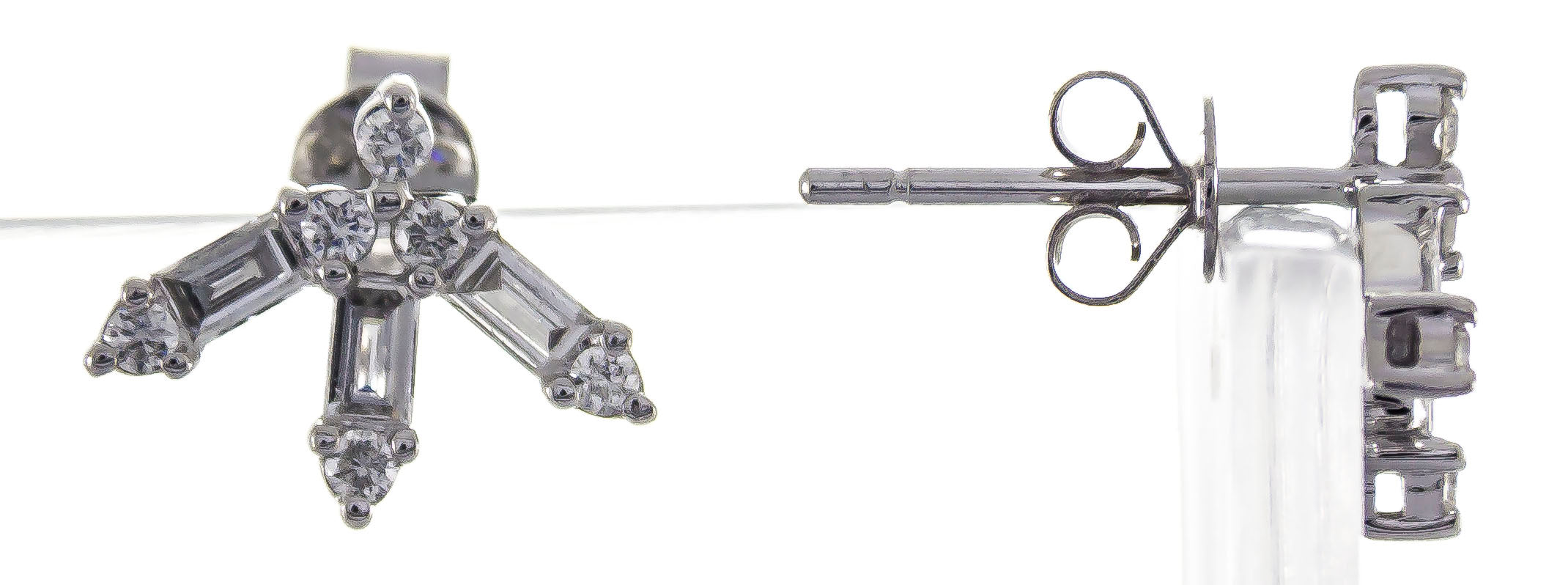 Decorate yourself in elegance with this Earring is crafted from 18-karat White Gold by Gin & Grace. This Earring is made up of Round-cut White Diamond (12 pcs) 0.17 carat, Baguette-cut White Diamond (6 pcs) 0.38 carat. This Earring is weight 1.66 grams. This delicate Earring is polished to a high finish shine.